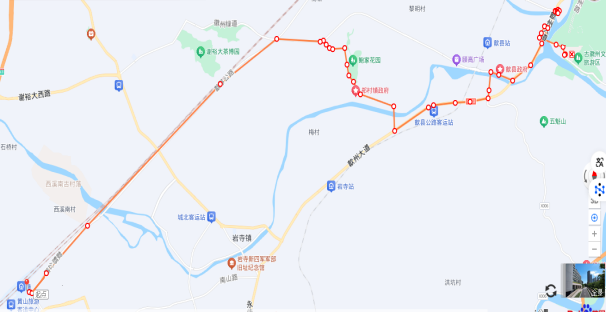 徽州古城-黄山北线路走向图