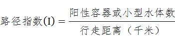 密度指标:路径指数(I),单位为阳性水体数每千米(阳性水体数/千米)。