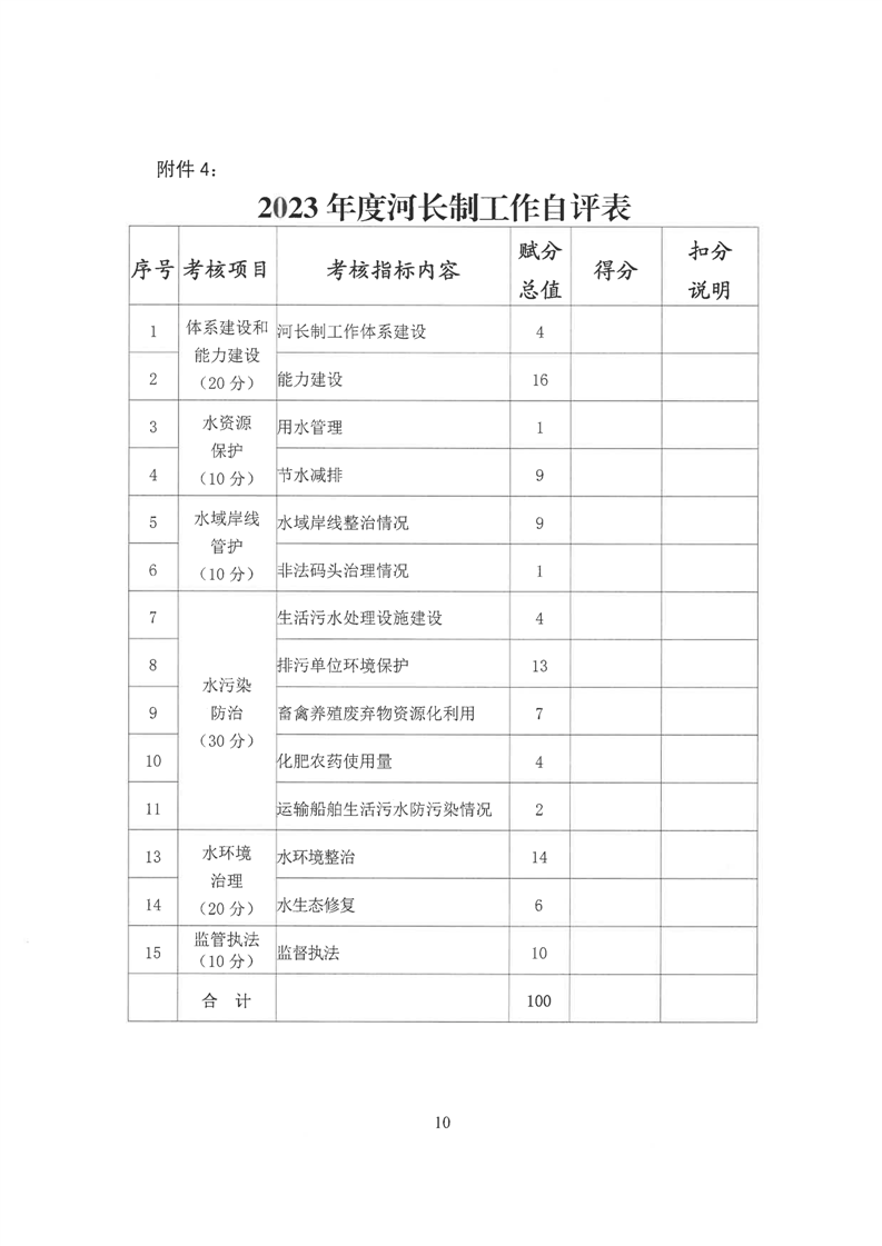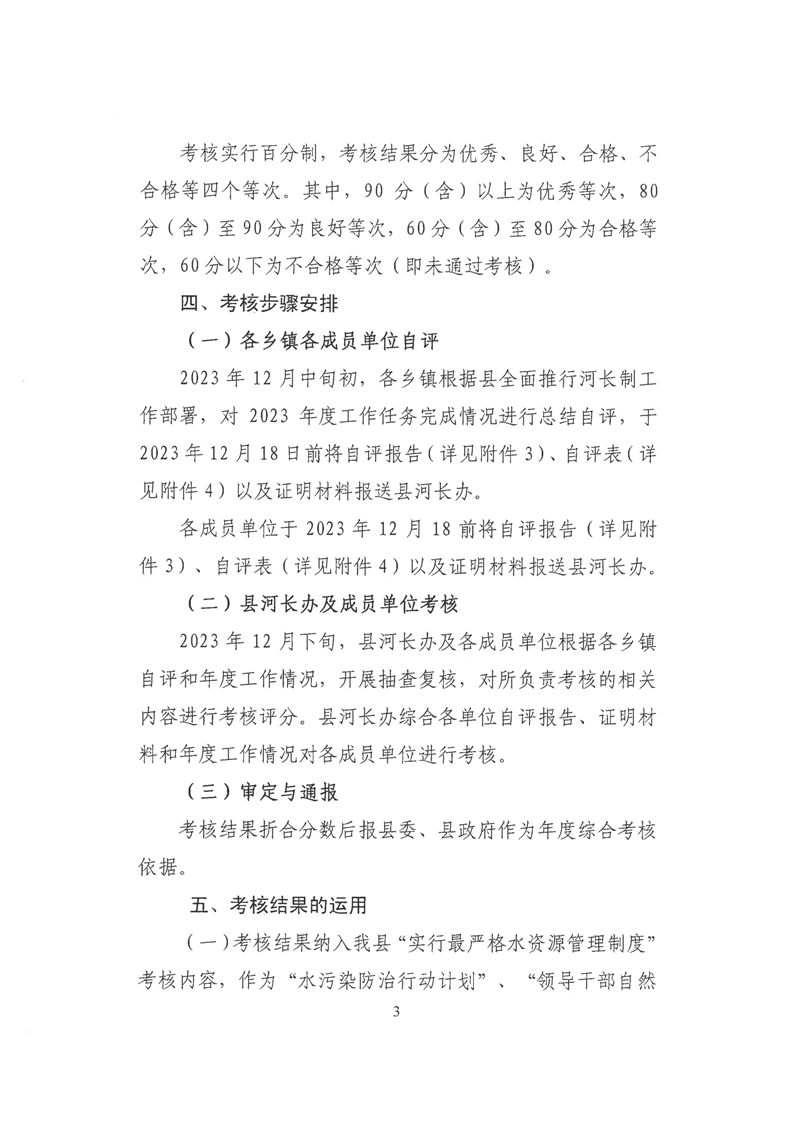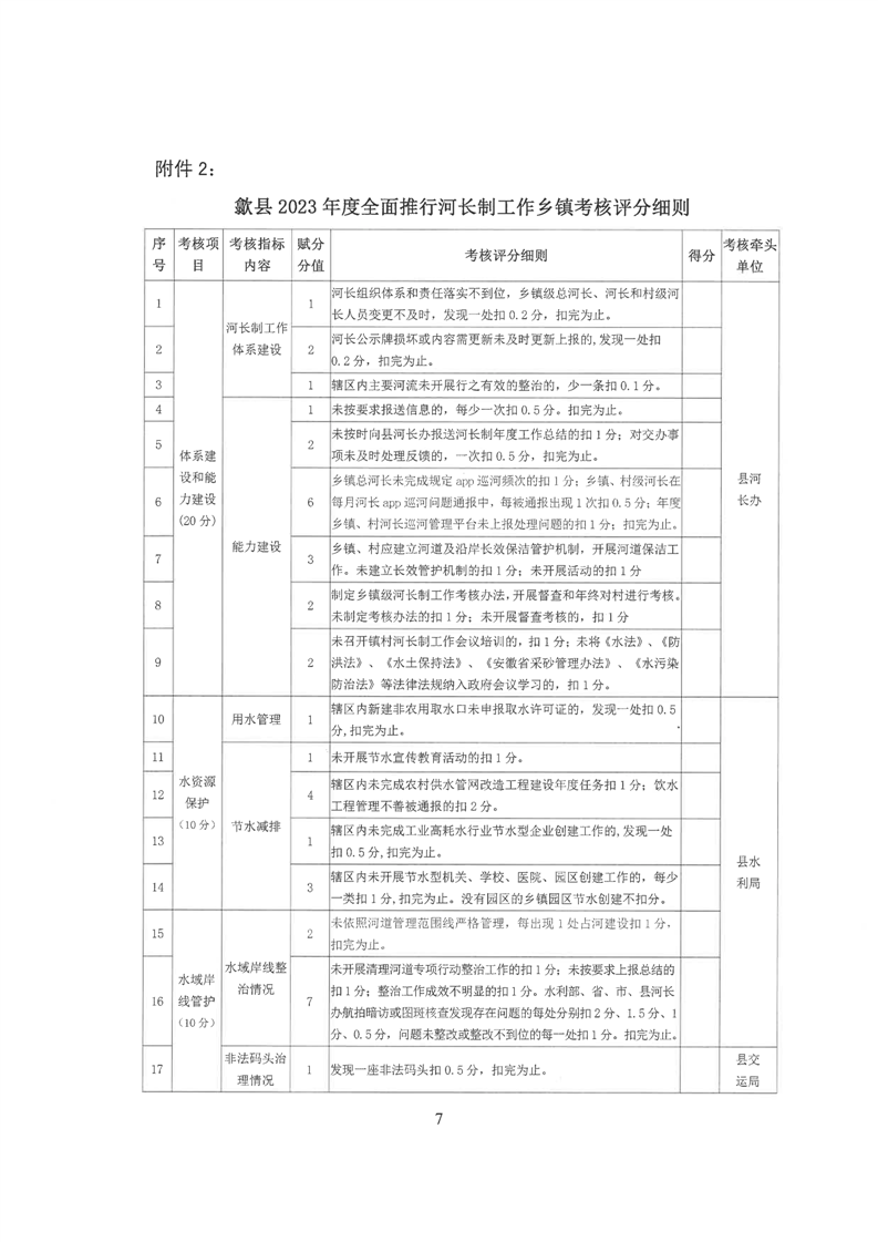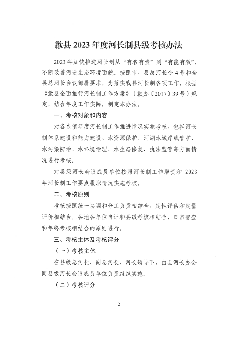 歙县2023年度河长制县级考核办法