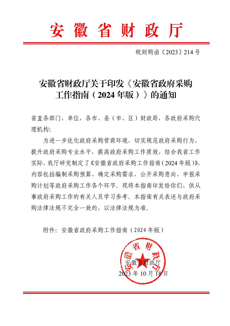 安徽省财政厅关于印发《安徽省政府采购工作指南(2024年版)》的通知