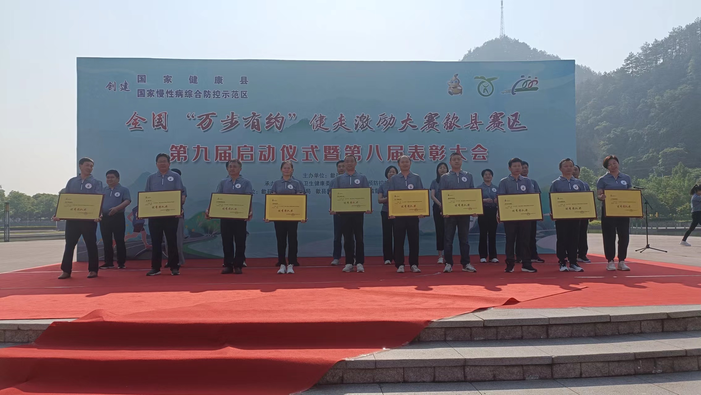 县卫生健康委主任徐赛美宣读第八届“万步有约”健走激励大赛歙县赛区获奖情况。现场为第八届“万步有约”健走激励大赛歙县赛区10个优秀团队颁奖。
