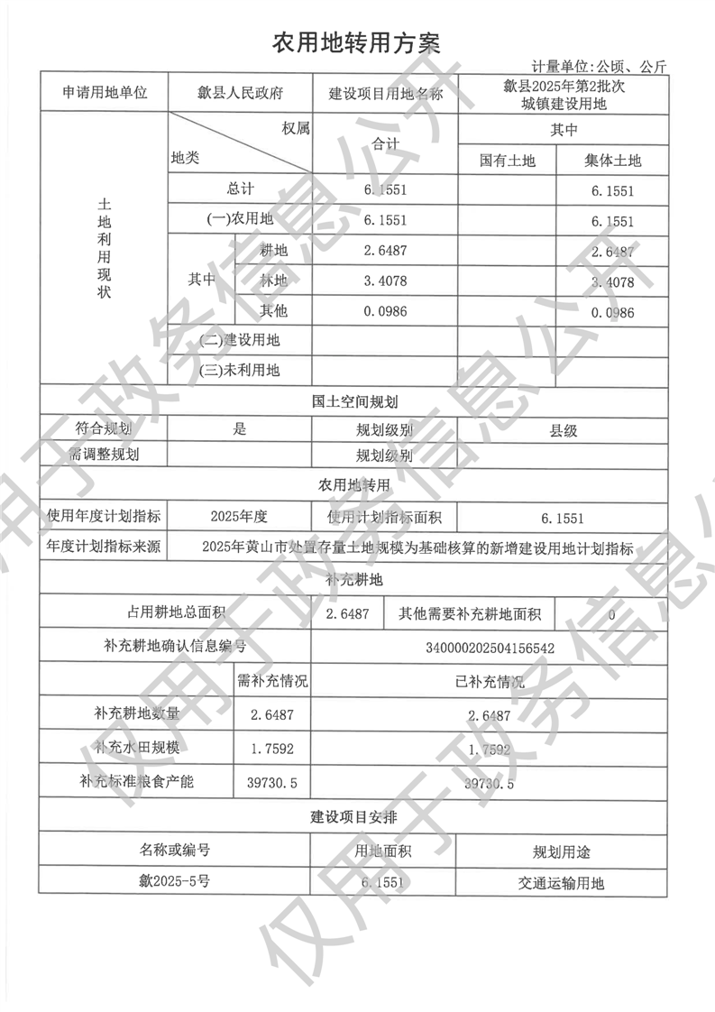 歙县2025年第2批次城镇建设用地农用地转用方案