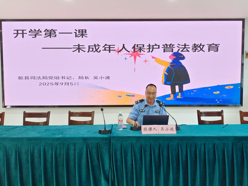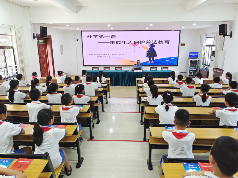 9月5日新学期伊始,歙县司法局党组书记、局长吴小波走进新安小学,为学生们带来了一堂别开生面的“开学第一课”。本次活动以“法治护航青春路,同心共筑未来梦”为主题,通过生动讲解、发放宣传资料等方式,进一步增强未成年人的法律意识和民族团结观念,营造平安和谐的校园环境。