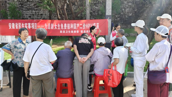 工作人员向群众科普宫颈癌的三级预防,强调我国超过84.5%的宫颈癌是由HPV16和18型这两种高危型人乳头瘤病毒持续感染导致,重点向适龄女生家长解读政策内容,明确免费接种对象为我县七到九年级的在校女生。“接种二价HPV疫苗能有效预防70%的宫颈癌,是守护女生健康的重要举措”,免疫规划科负责人在现场答疑时强调。来我县旅游的滁州游客张女士连连说工作人员解释到位,讲得非常好,她回去也要向亲朋好友宣传这一政策和相关健康知识。