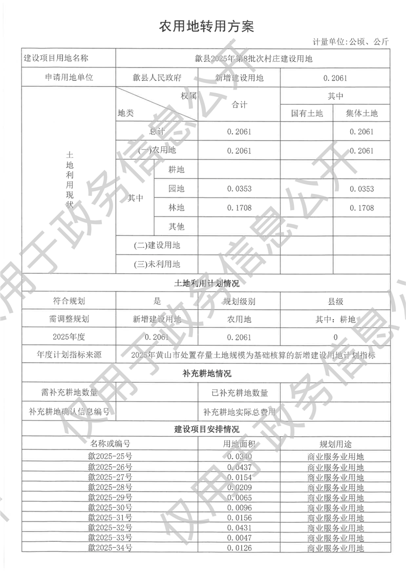 歙县2025年第8批次村庄建设用地农用地转用方案
