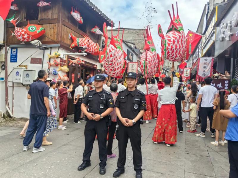 今天上午,美丽的古徽州迎来了第一波旅游热,全县各大景区游人络绎不绝,节日氛围浓厚。为充当好群众安心人角色,歙县公安各民警辅警早早到岗到位,利用“步巡+空巡”立体巡防模式,加强各景区治安防控力度,切实提高“见警率”,全力营造良好的文旅环境。