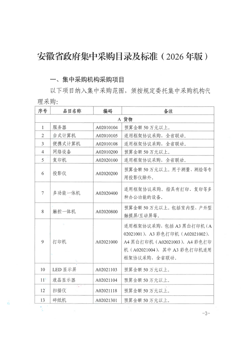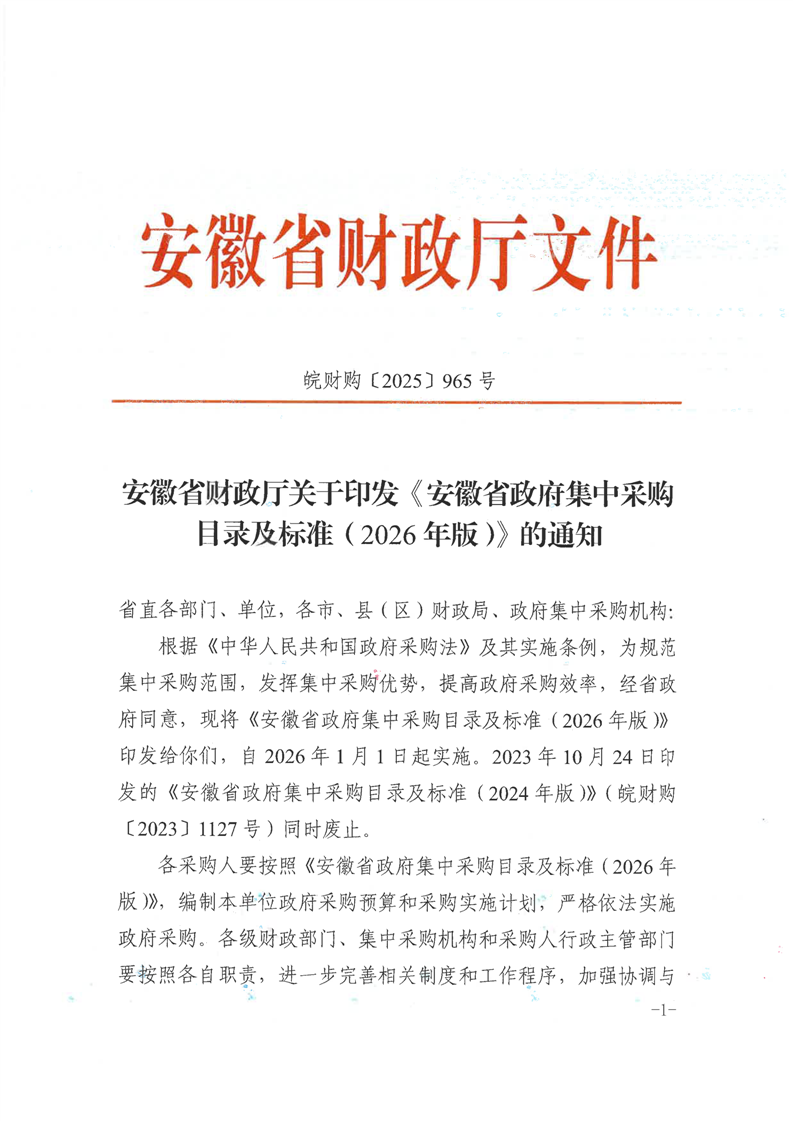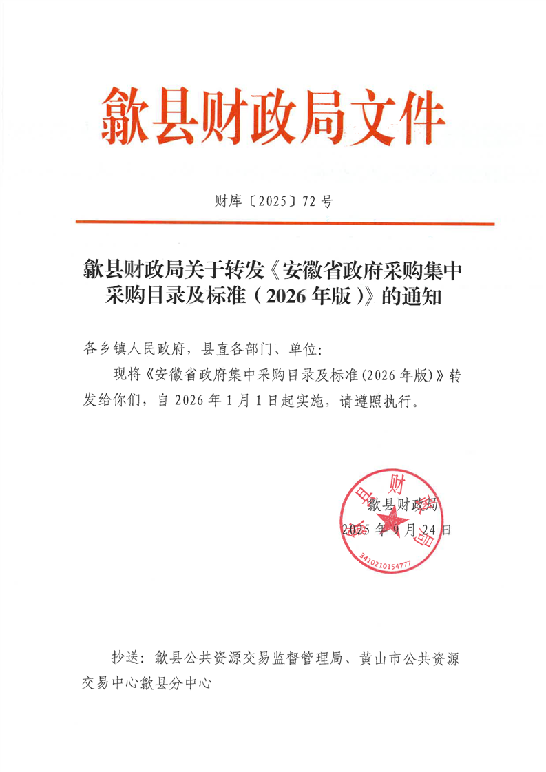 歙县财政局关于转发《安徽省政府采购集中采购目录及标准(2026年版)》的通知