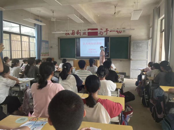 许村镇卫生院的防保负责人围绕狂犬病防治进行了专业讲解。通过真实的案例和图文并茂的PPT向同学们详细阐述了狂犬病的巨大危害性和可防不可治的特性。重点讲解了如何避免被猫、狗等动物咬伤,一旦发生暴露后“清洗伤口、接种疫苗”的关键处理流程。增强了同学们的自我防护意识和应急处置能力。