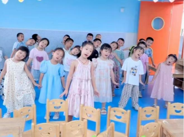 大二班教师围绕幼儿核心素养发展,精心设计了一系列富有感染力的音乐活动。当活泼的节奏响起,孩子们不再是安静的听众,而是用整个身体去感受音乐:他们用小手模仿雨点的轻快,用脚步踏出节拍的强弱,用旋转表达情绪的欢愉。这种沉浸式的教学方式,让抽象的旋律化为了可感知的肢体语言,构建出一个真正属于儿童的自由课堂。