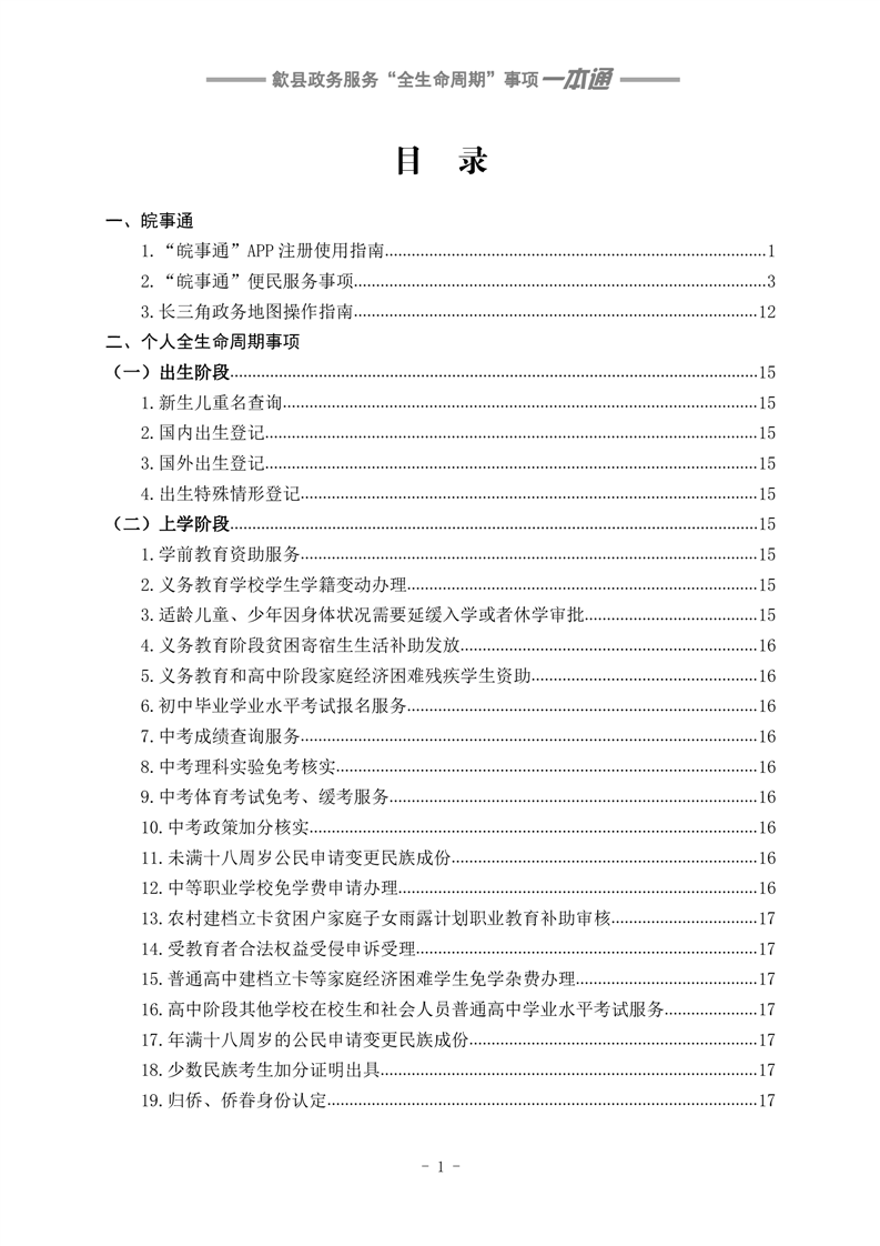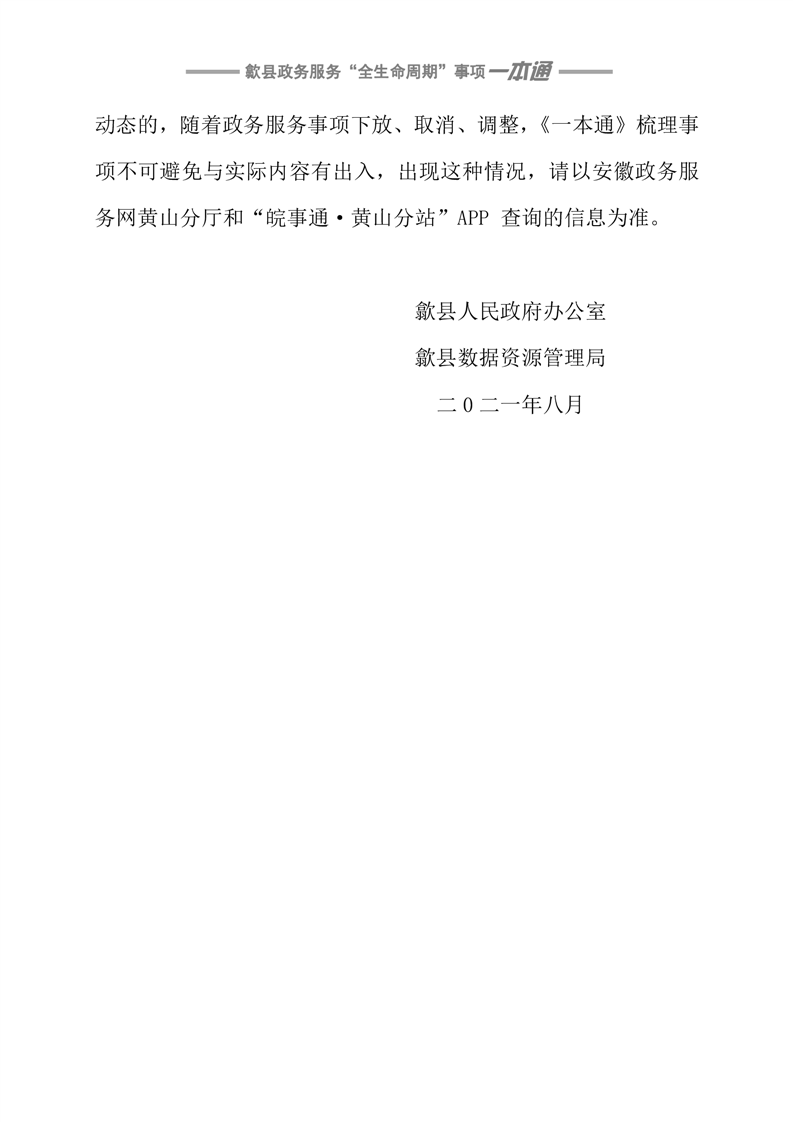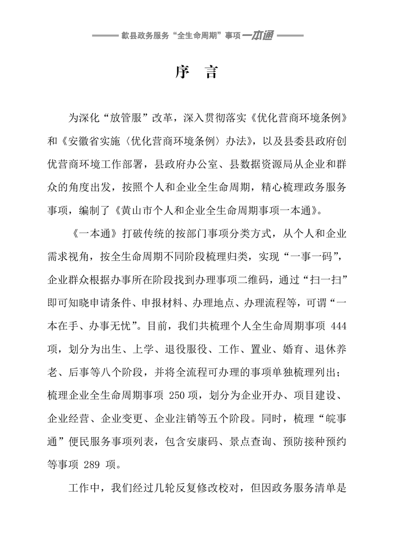 歙县政务服务“全生命周期”事项一本通