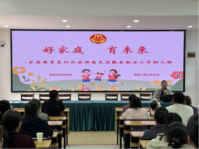 为破解家长育儿困惑、助力孩子好习惯养成,2025年11月1日,歙县新安小学幼儿园积极对接县妇联,特邀县心理卫生协会会长胡继佳老师担任心灵导师,开展“好家庭 育未来”系列讲座,本次主题为“用心带娃 塑造好习惯”。