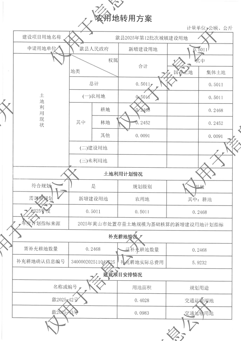 歙县2025年第12批次城镇建设用地农转用方案