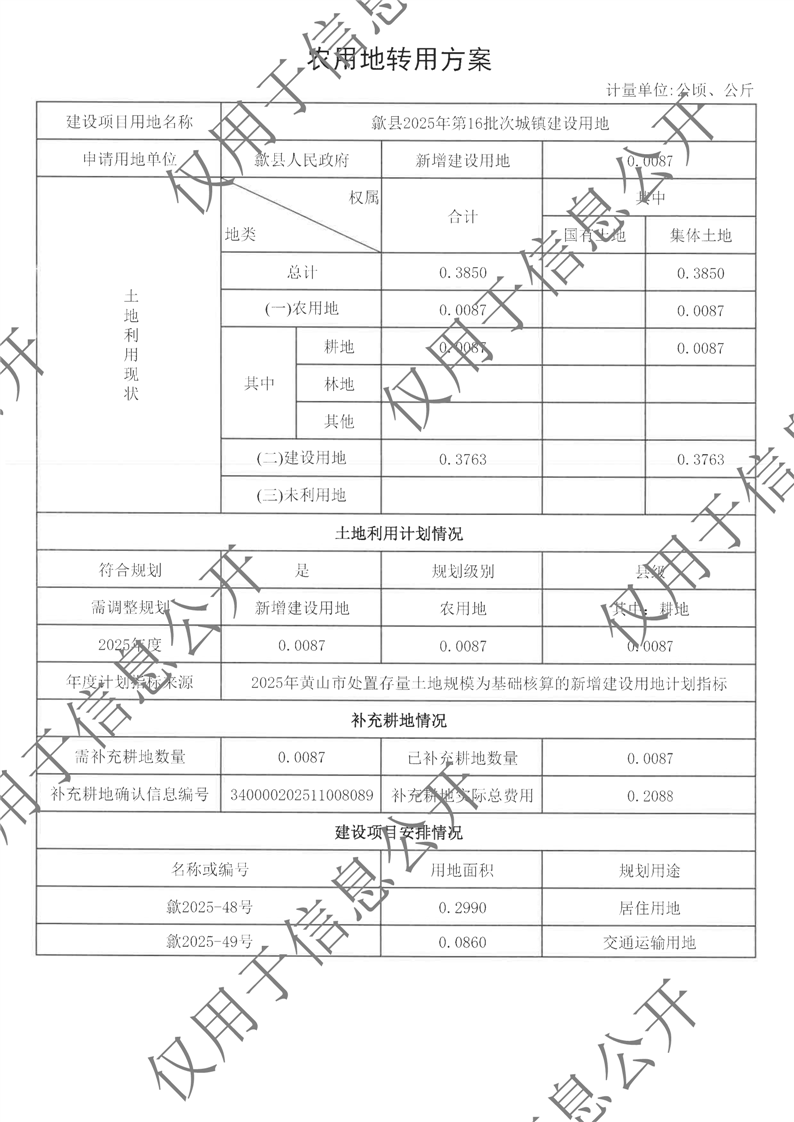 歙县2025年第16批次城镇建设用地农转用方案