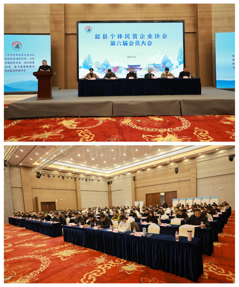12月5日,歙县个体民营企业协会第六届会员大会暨换届选举大会隆重召开。黄山市市场监督管理局、歙县市场监督管理局、歙县民政局相关领导及全县百余名个私企业代表齐聚一堂,共同见证协会发展的重要时刻。