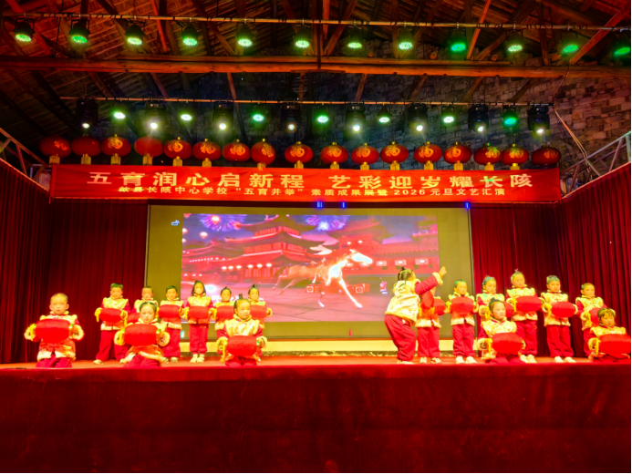 2025年12月31日上午,长陔村老电影院内笑语盈盈、乐声阵阵,歙县长陔中心学校以“五育润心启新程 艺彩迎岁耀长陔”为主题的元旦文艺汇演在此浓情上演。当地乡党委政府、派出所、各村“两委”、家长朋友与全校师生欢聚一堂,共赏五育融合成果,喜迎2026新年到来。