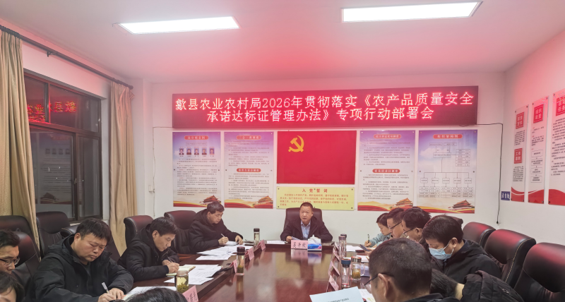 为深入学习贯彻落实《农产品质量安全承诺达标合格证管理办法》(以下简称《办法》),筑牢农产品质量安全防线,1月29日,歙县农业农村局主要负责同志主持召开2026年贯彻落实《办法》专项行动部署会。为确保《办法》落地落细、见行见效。此前,歙县农业农村局已联合歙县市场监督管理局发布《关于全面贯彻落实〈农产品质量安全承诺达标合格证管理办法〉的倡议书》,通过“部署+倡议”双举措同向发力,推动《办法》落地生根,压紧压实县域农产品质量安全全链条监管责任。