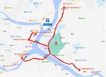 徽州路、长青路、平安路、中央大道、新安路与平安路交口至新安路与徽州路交口、歙州大道与紫霞路交口至披云路与太平桥交口、太平桥。