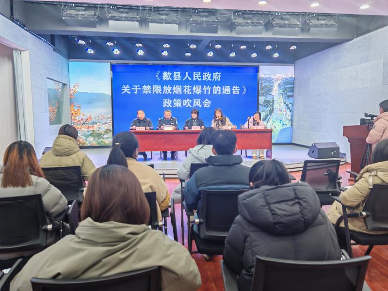 2026年2月10日上午9:00,我县在融媒体六楼召开《歙县人民政府关于禁限放烟花爆竹的通告》政策吹风会,由县公安局党委委员、副局长曹俊作发布。具体内容如下: