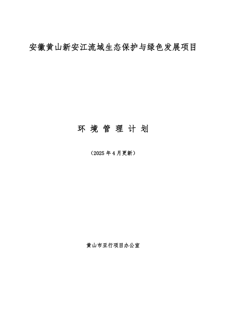 安徽黄山新安江流域生态保护与绿色发展项目环境理计划