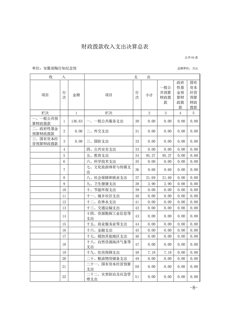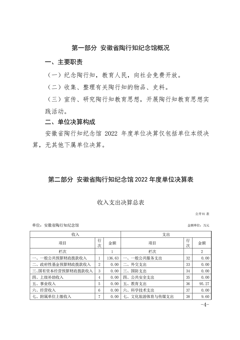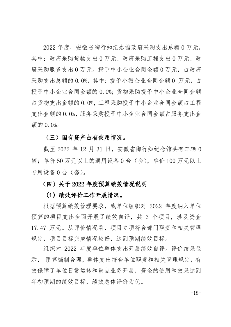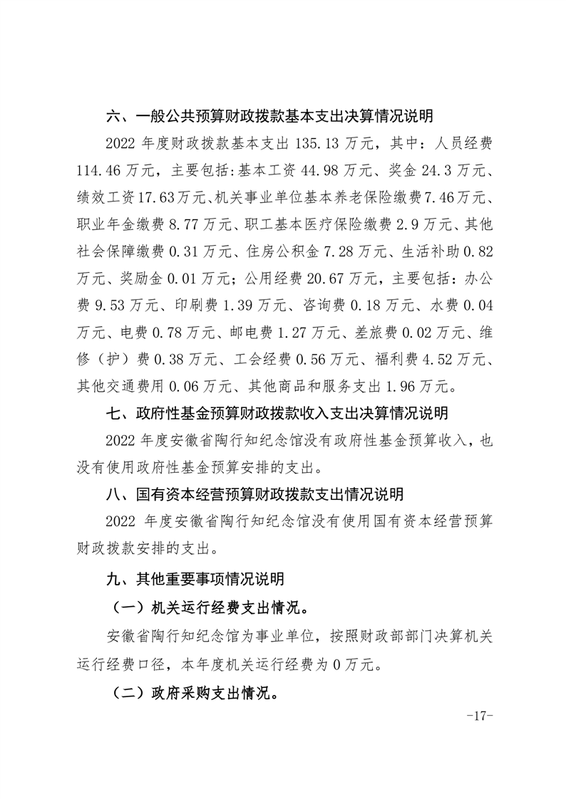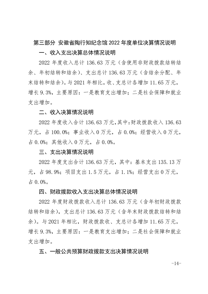 安徽省陶行知纪念馆2022年度单位决算.pdf