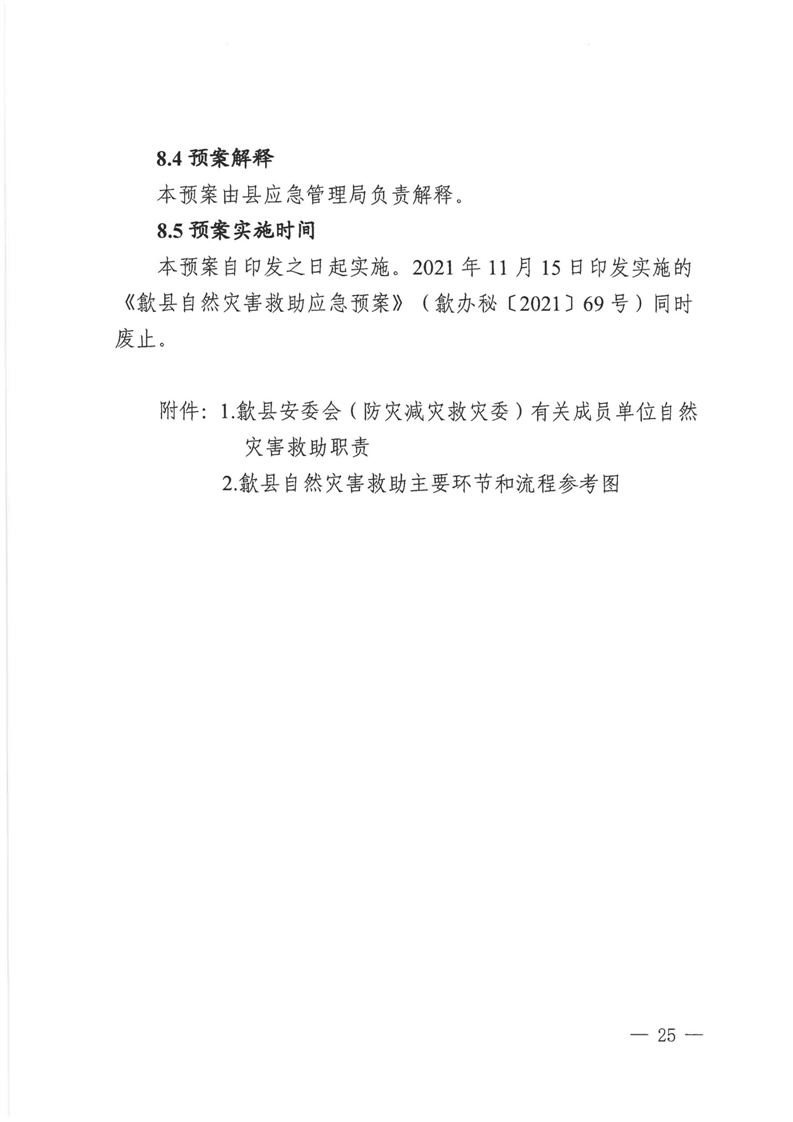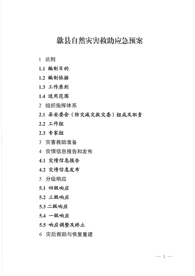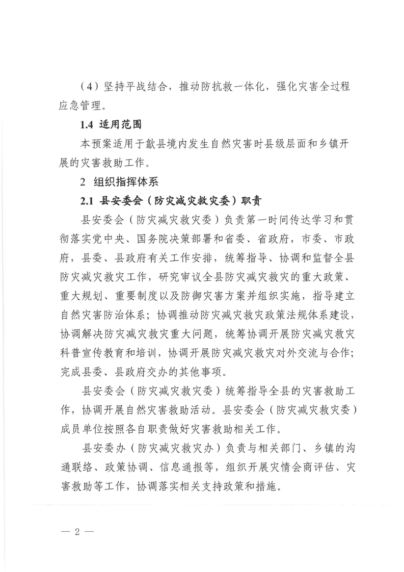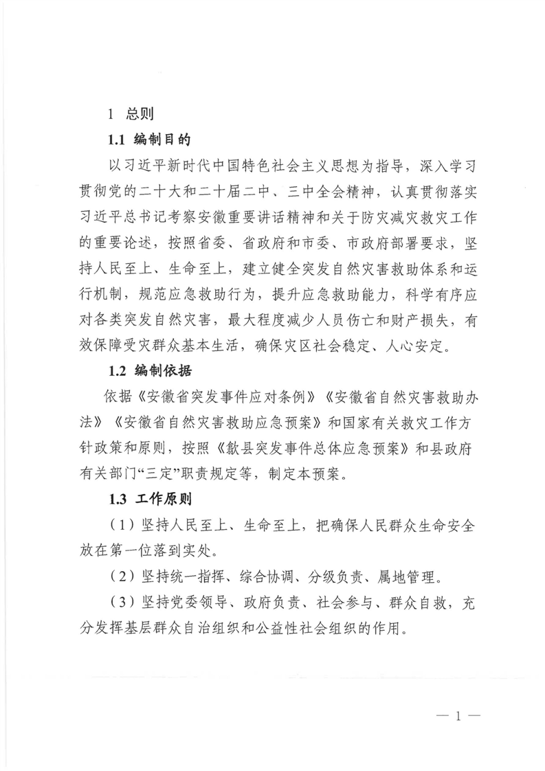 【自然灾害】歙县自然灾害救助应急预案