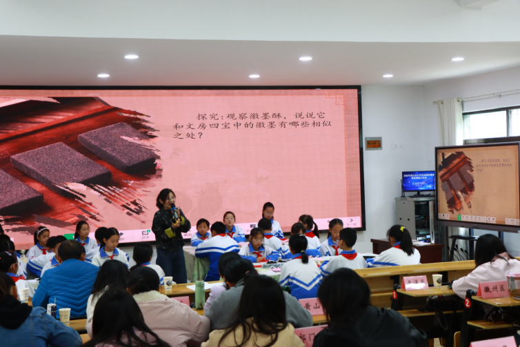观摩展示课上,冯洁老师执教《寻味家乡非遗,制作“小松”酥》一课。她从徽州特色美食切入,引导学生认识家乡美食文化,并详细展示了传统徽墨酥的制作工艺。课程注重激发学生对徽州工匠精神的感悟,鼓励他们大胆创新,尝试设计属于自己的“小松酥”。整堂课紧扣劳动核心素养,环节设计层层递进,尤其在引导学生分享劳动成果方面,赢得了与会教师的一致好评。