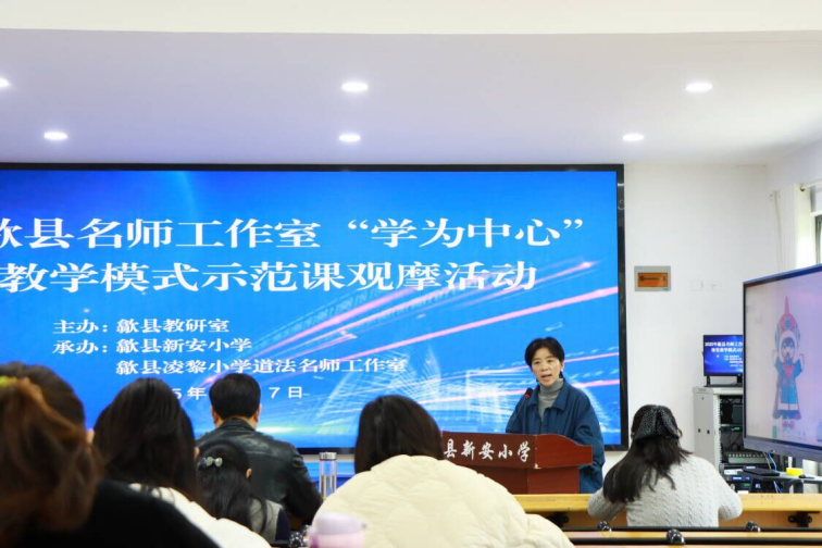 11月7日上午,歙县名师工作室“学为中心”课堂教学模式示范课小学道德与法治专场活动在新安小学成功举办。歙县凌黎名师工作室成员与全县小学道法骨干教师齐聚一堂,通过示范课观摩、深度评课议课、专题微讲座等形式,共探“学为中心”教学模式,助力立德树人根本任务落地生根。