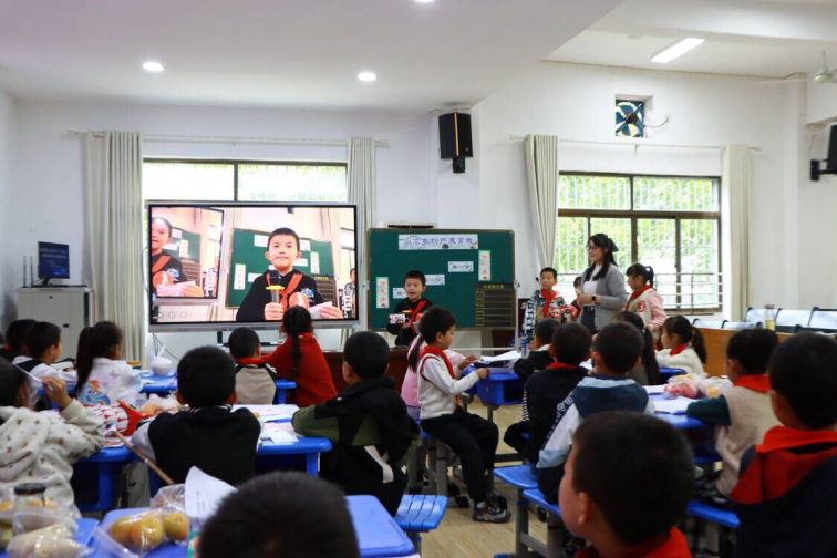 活动现场,凌黎名师工作室成员、扬之学校宋珈老师执教《家乡物产养育我》示范课。她以“徽物集”为核心创设真实情境,围绕歙县特色物产,引导二年级学生开展“说一说”“分一分”“夸一夸”等互动环节,让学生在分享课外实践收获的过程中,系统认知家乡物产。课堂尾声的“家乡物产推荐官”直播间体验,更让学生在沉浸式参与中,深切感受歙县物产的丰富底蕴,油然而生对家乡的热爱与自豪。