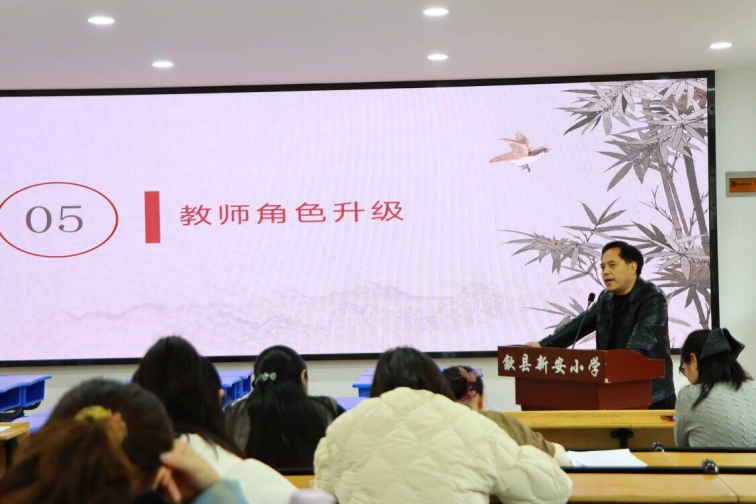 最后,歙县教研室教研员徐好生老师作《让道德与法治走进童心》微讲座。他从道法课程核心价值、生活化教学设计、沉浸式课堂体验、全域协同育人、教师角色提升及评价设计优化六个维度,为在场教师深化课程认知、提升教学能力提供了清晰指引,进一步明确了新时代道法教师的育人使命。