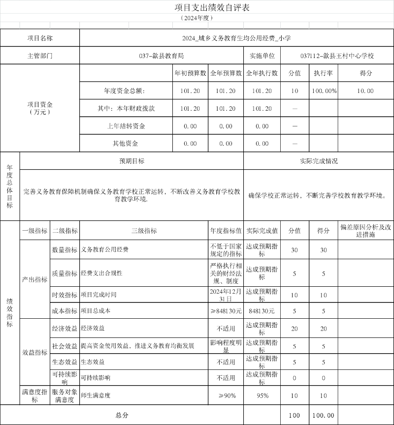 我单位在2024年度单位决算中反映2024_城乡义务教育生均公用经费_小学项目绩效自评综述和所有项目支出绩效自评表。