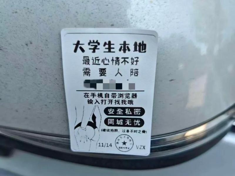 李先生发现自己车上后视镜被贴有“同城交友”小卡片,上边有着挑逗性的文字和身材火辣的美女配图,还附有网址和二维码,李先生禁不住诱惑扫描了小卡片上的二维码,下载了一款交友APP,李先生点开APP,没一会儿,“客服”便主动联系李先生,询问是否需要同城服务。