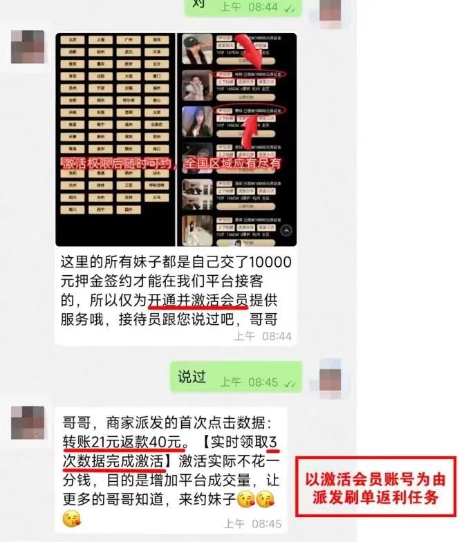 “客服”让李先生挑选心仪的对象,李先生选择了一位心动的美女。随后,“客服”告诉李先生,想要约P,需要开通会员并且还要做三个“充值刷数据”的任务,每个任务完成之后还可以得到公司的返利。