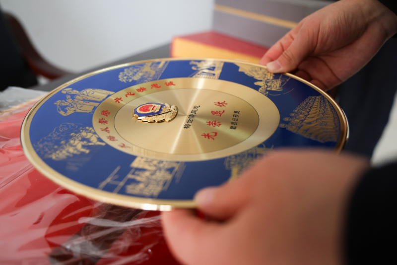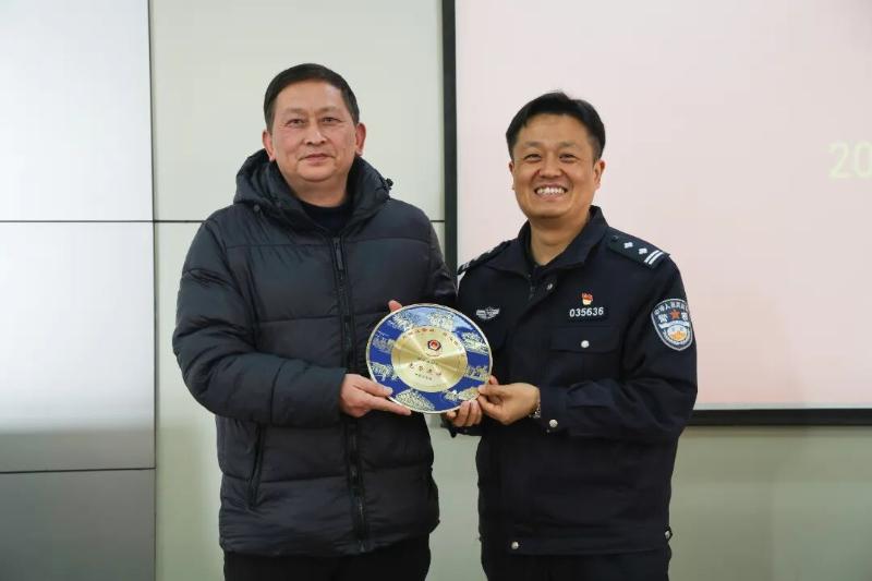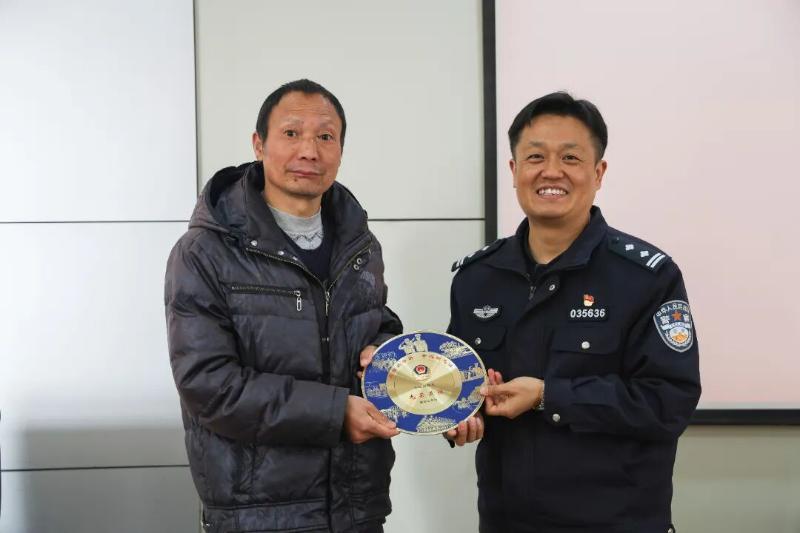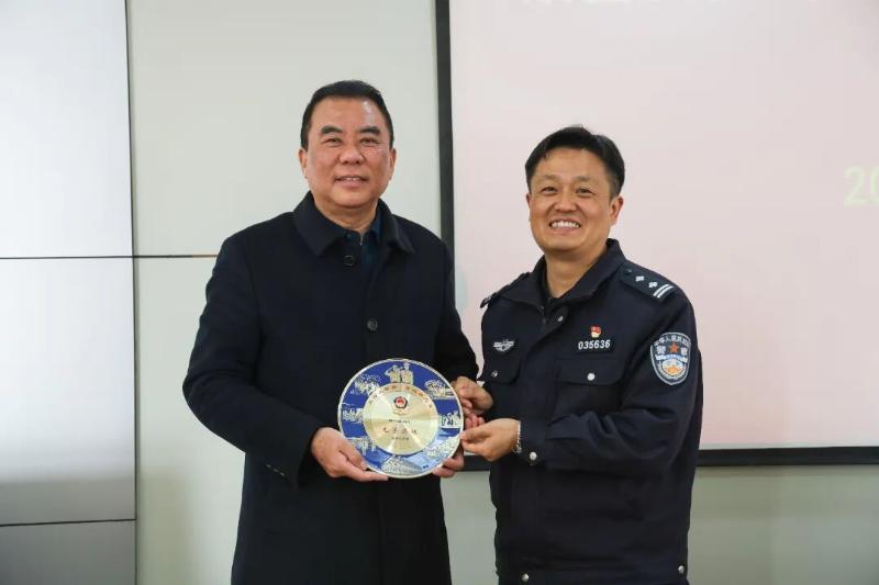 座谈会后,县局领导向退休民警逐一颁发了荣休纪念品,并合影进行留念。