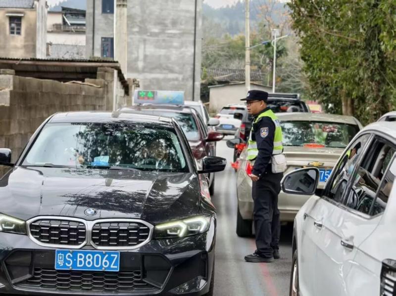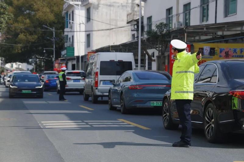 密集车流中,无数荧光黄持续坚守疏堵保畅