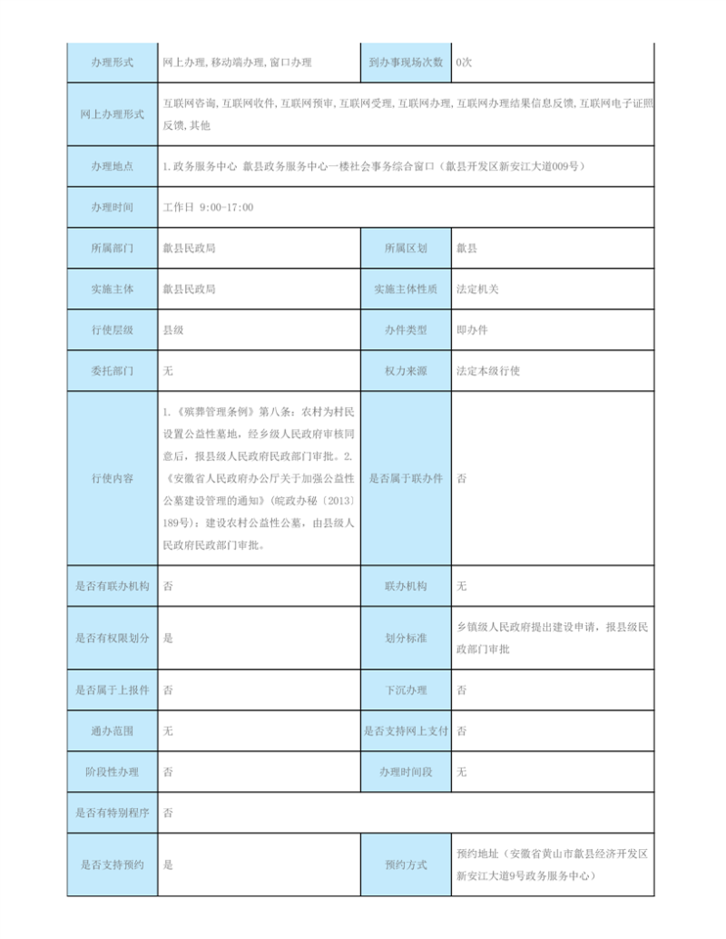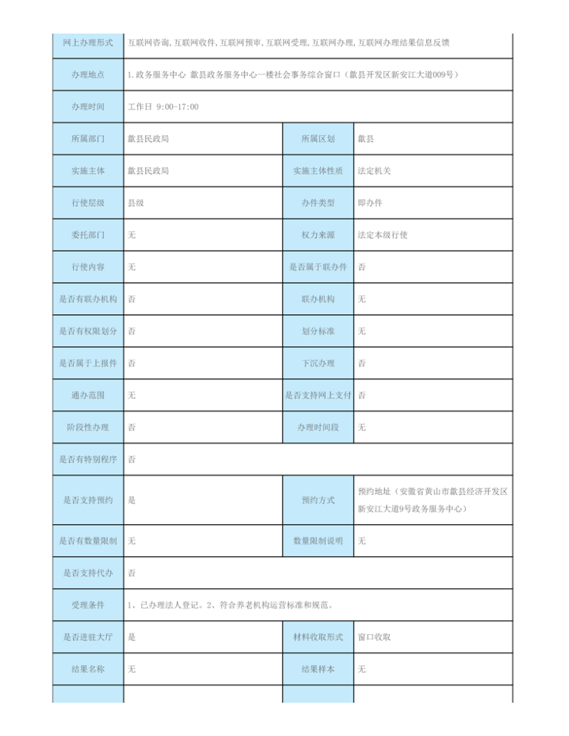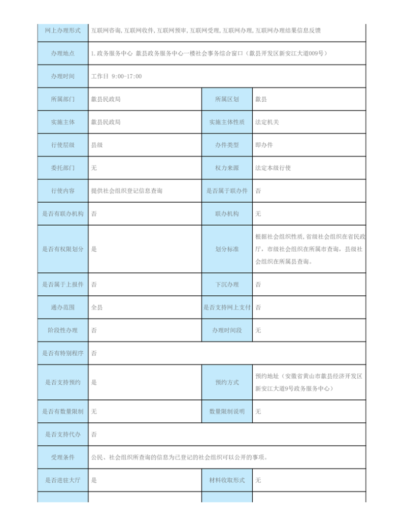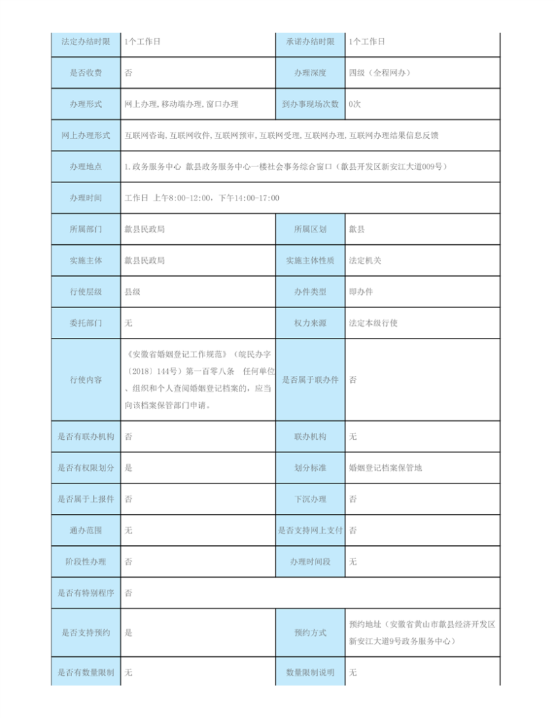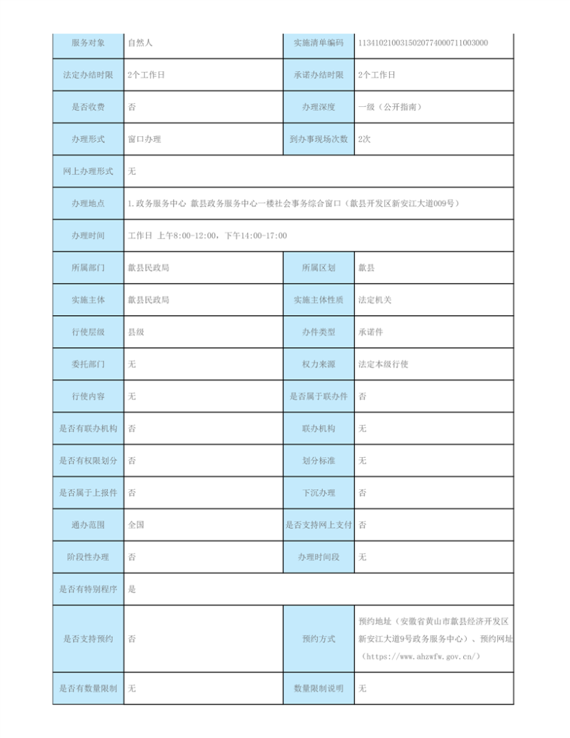 歙县民政局行政审批服务指南