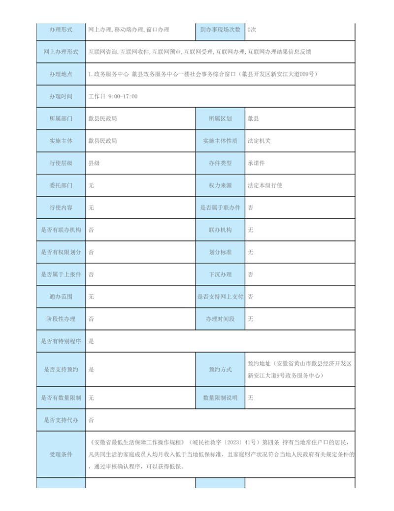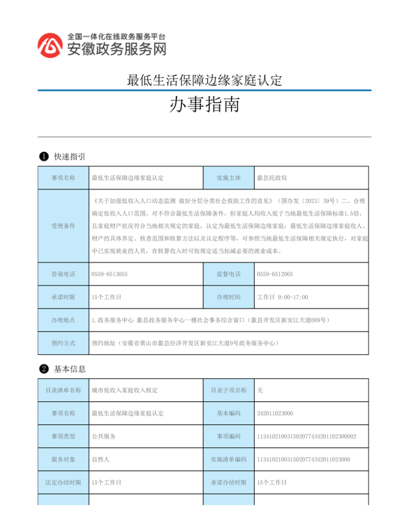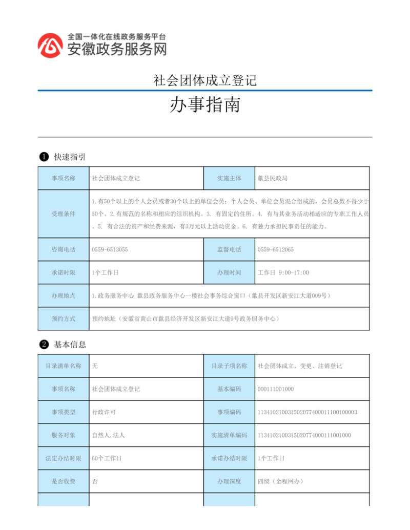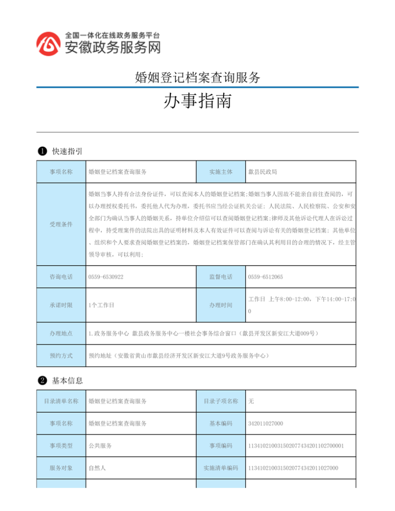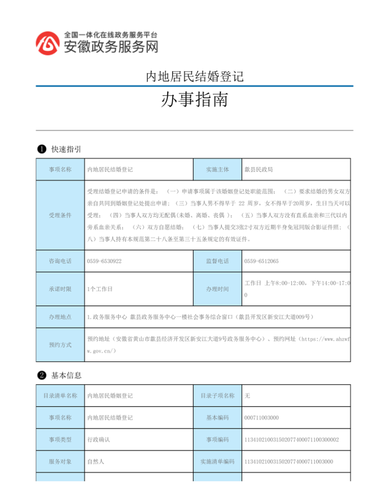 歙县民政局行政审批服务指南