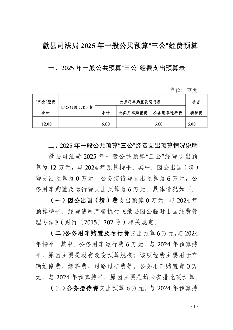 歙县司法局2025年一般公共预算“三公”经费预算