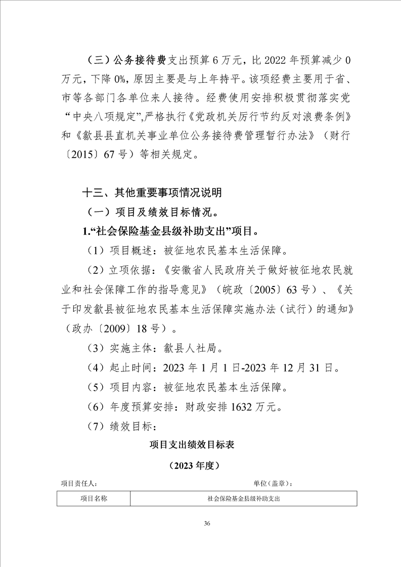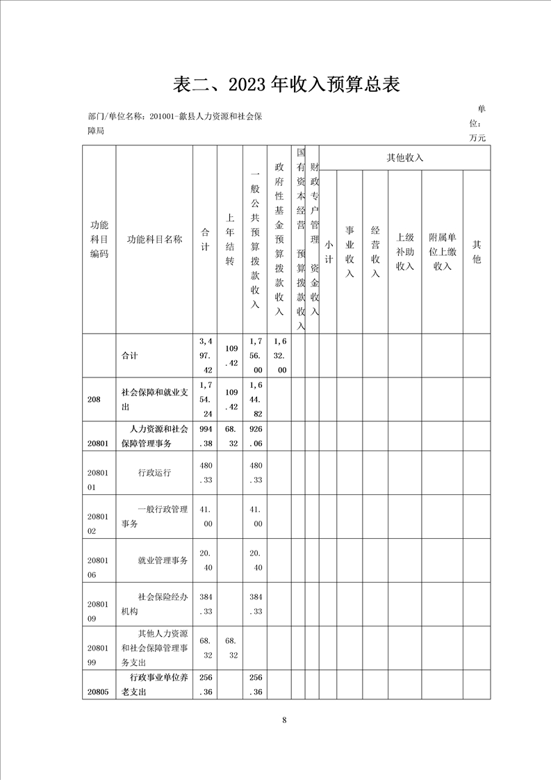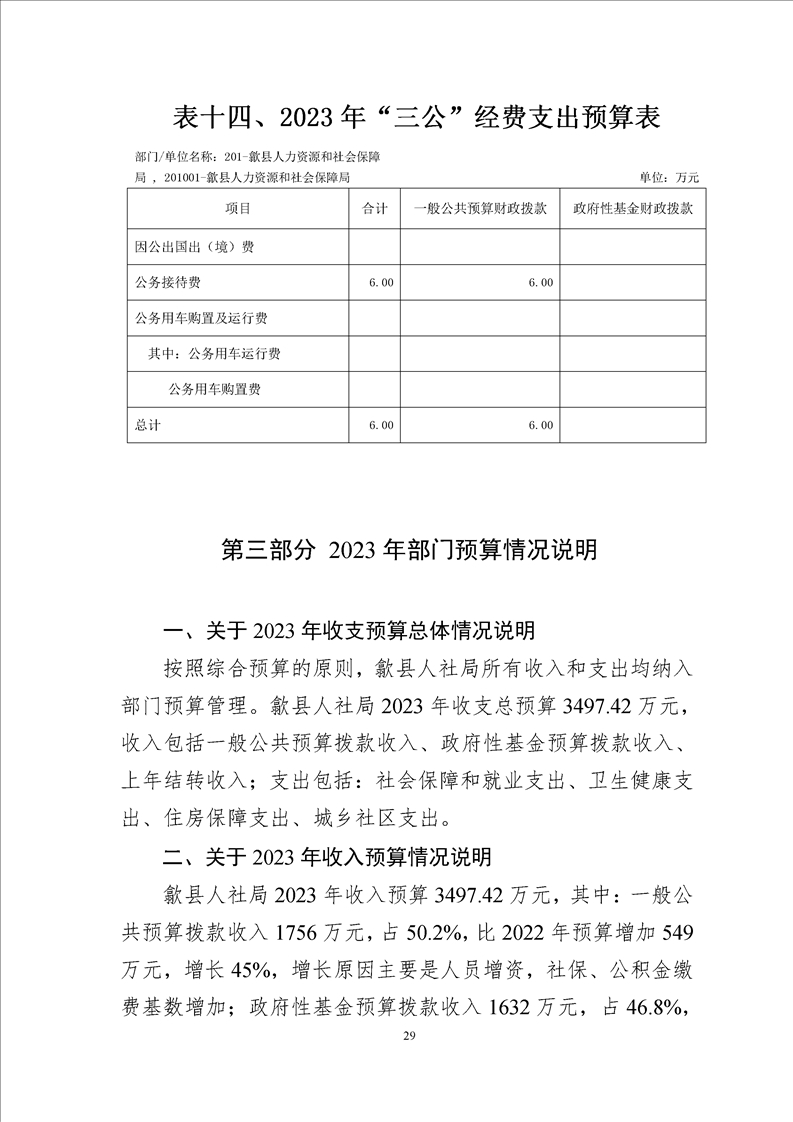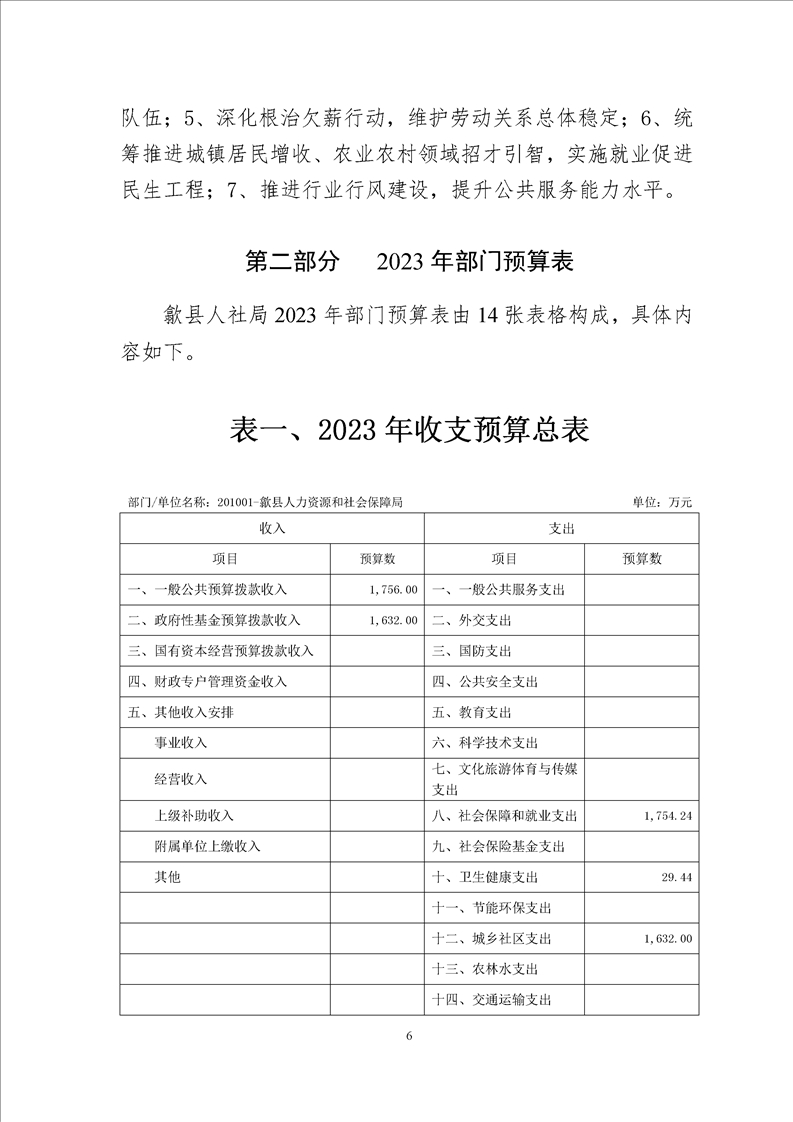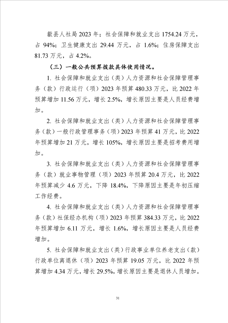 歙县人社局2023年部门预算