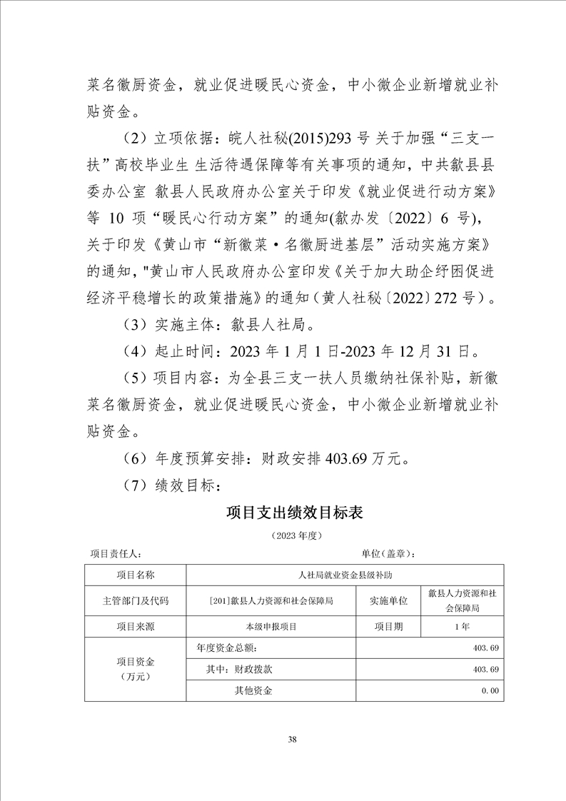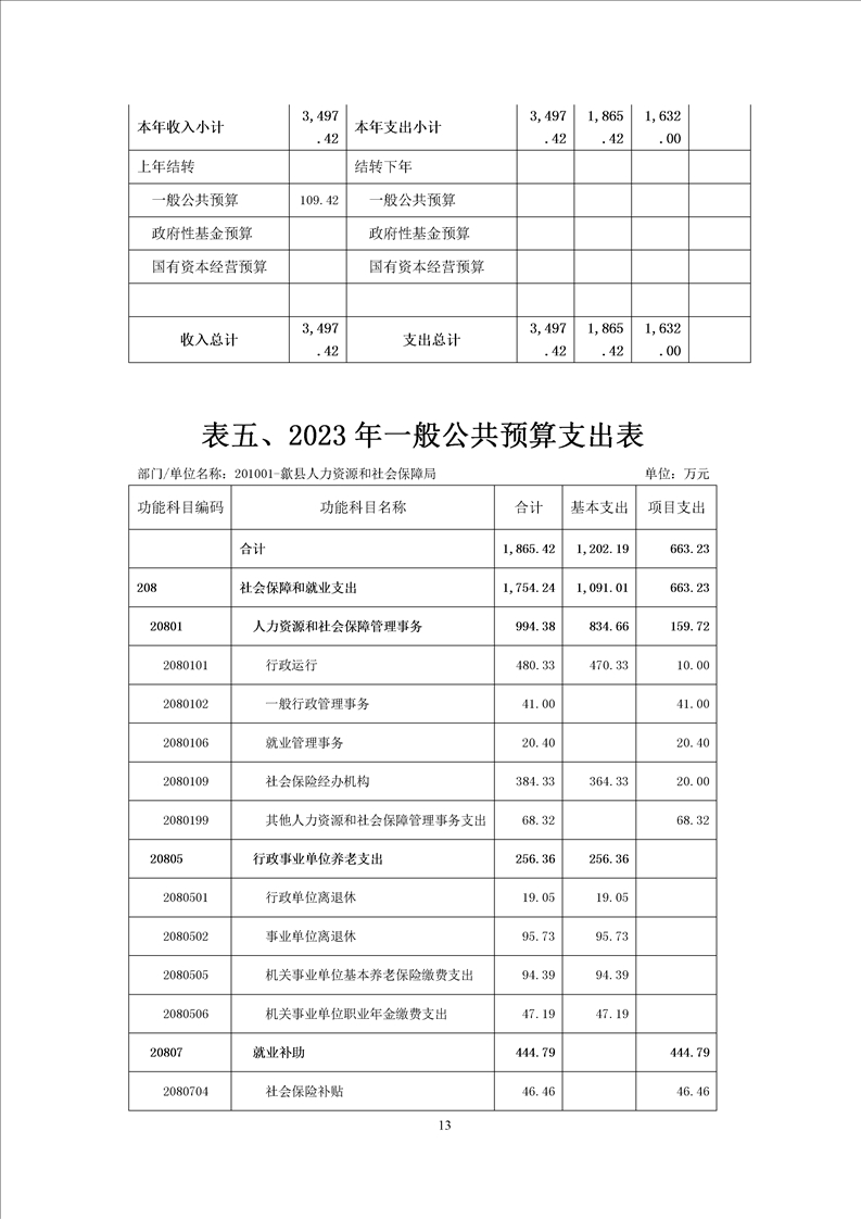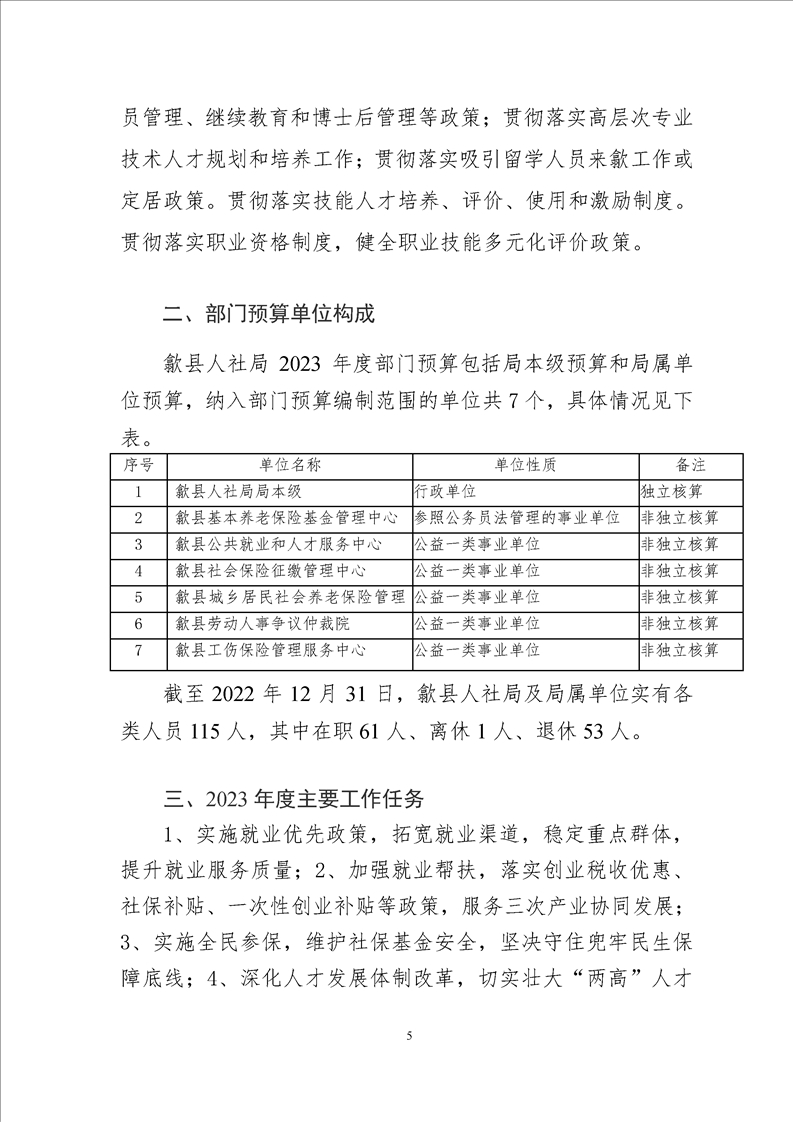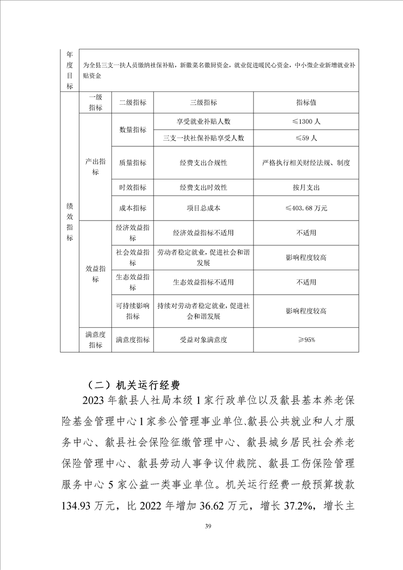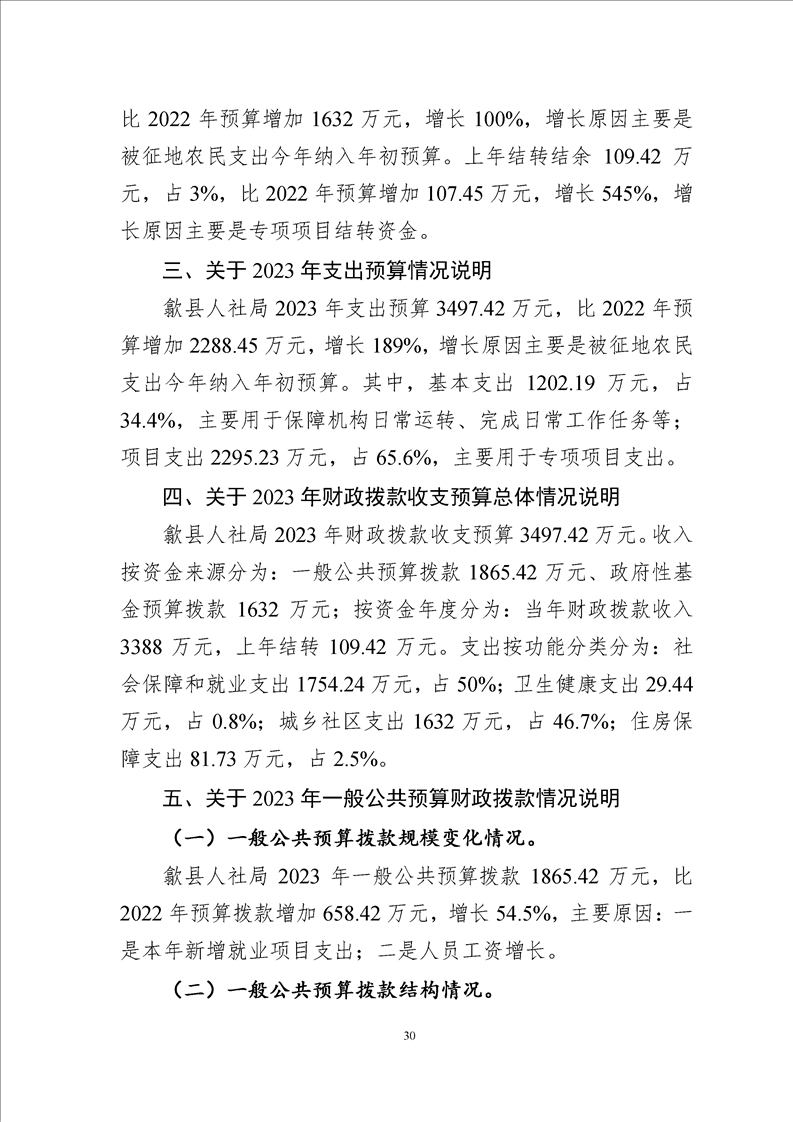 歙县人社局2023年部门预算
