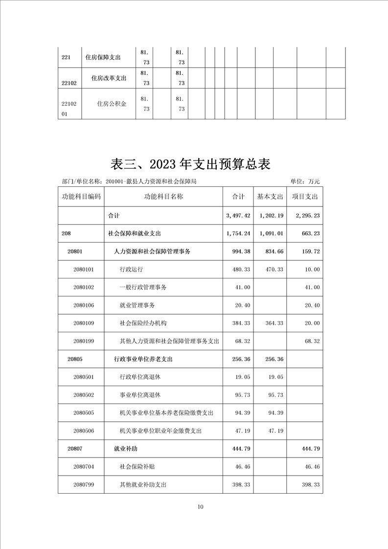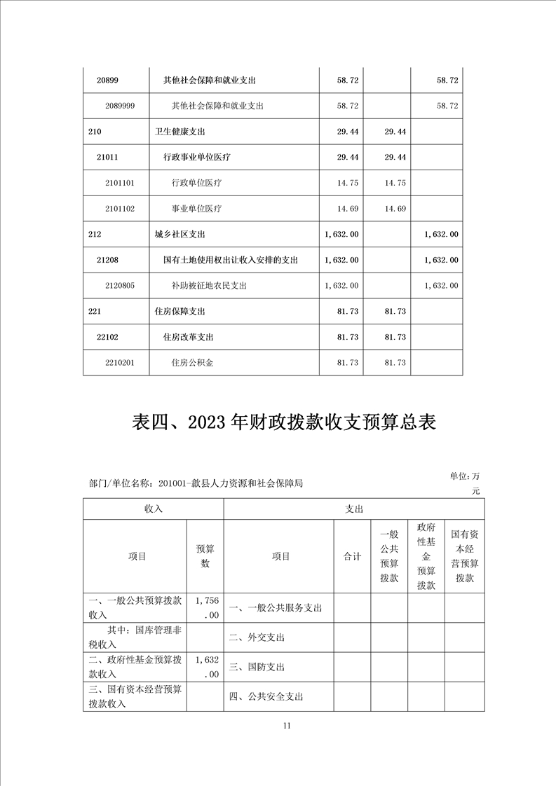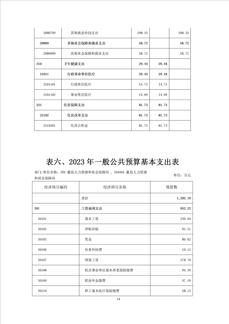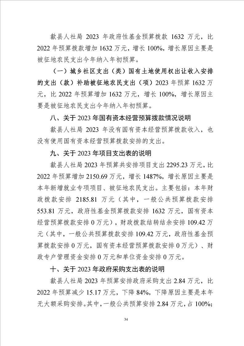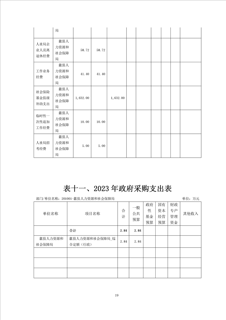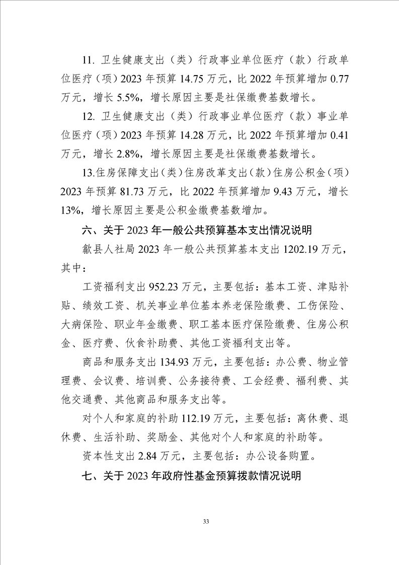 歙县人社局2023年部门预算