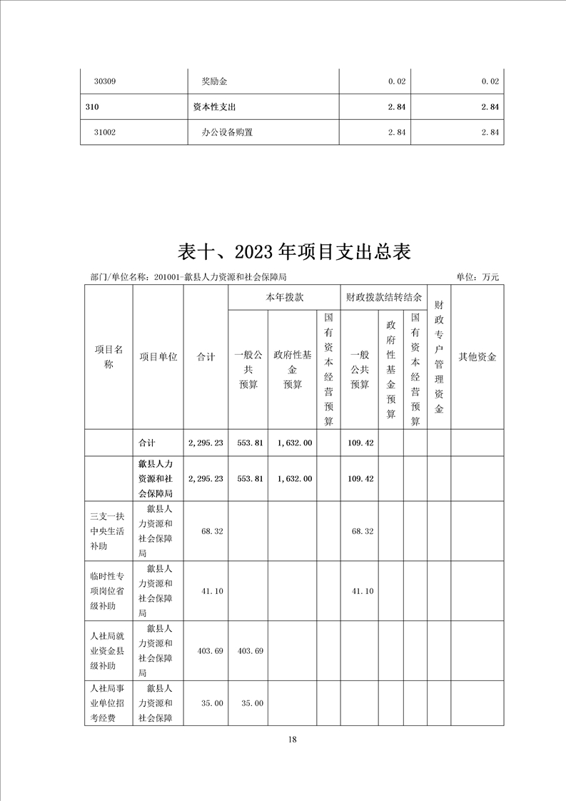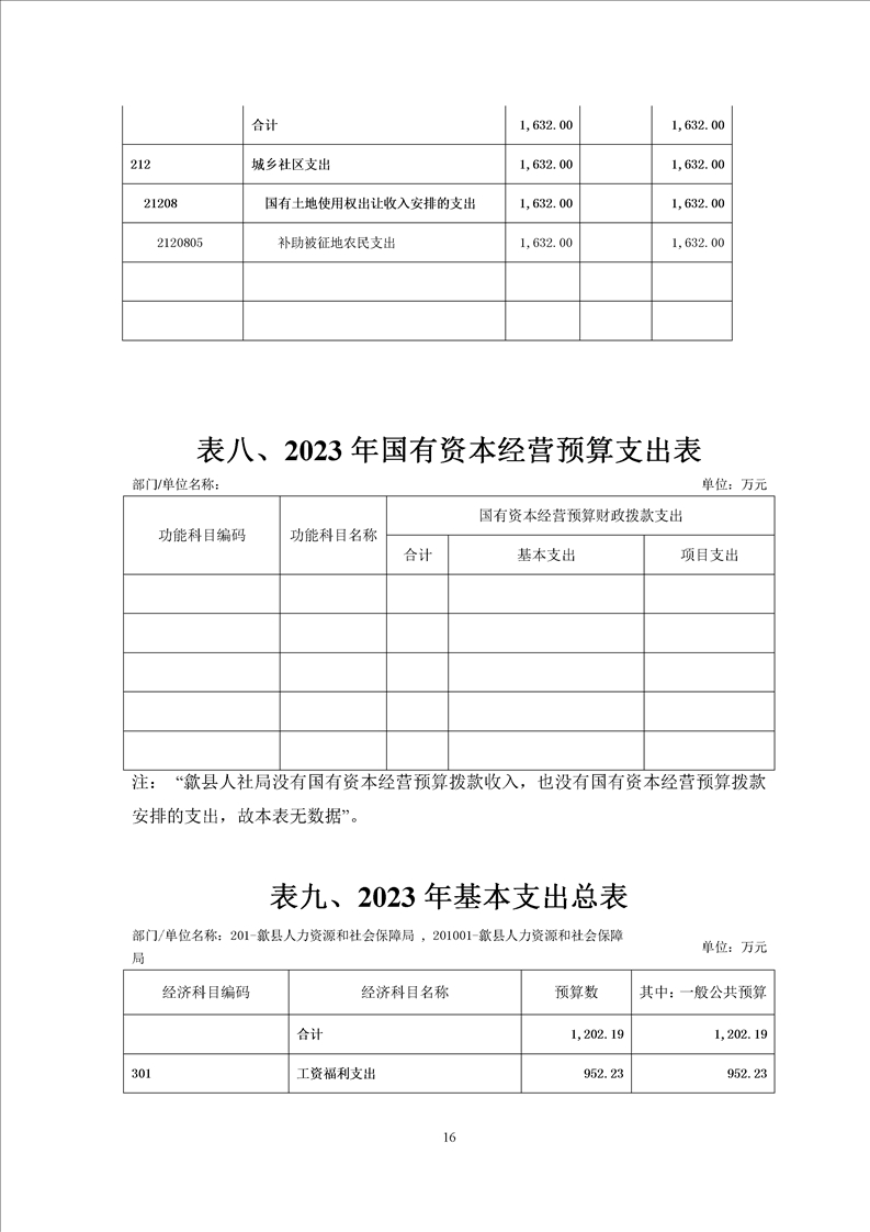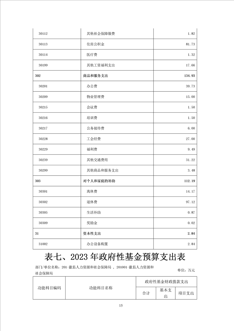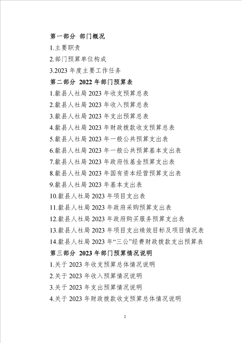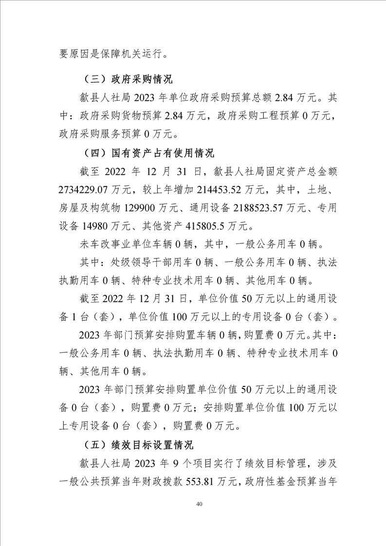 歙县人社局2023年部门预算