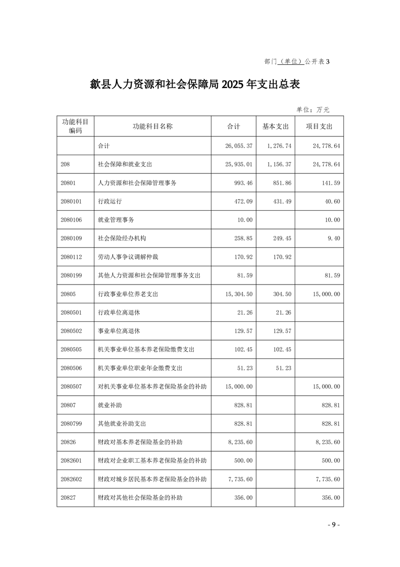 歙县人力资源和社会保障局2025年