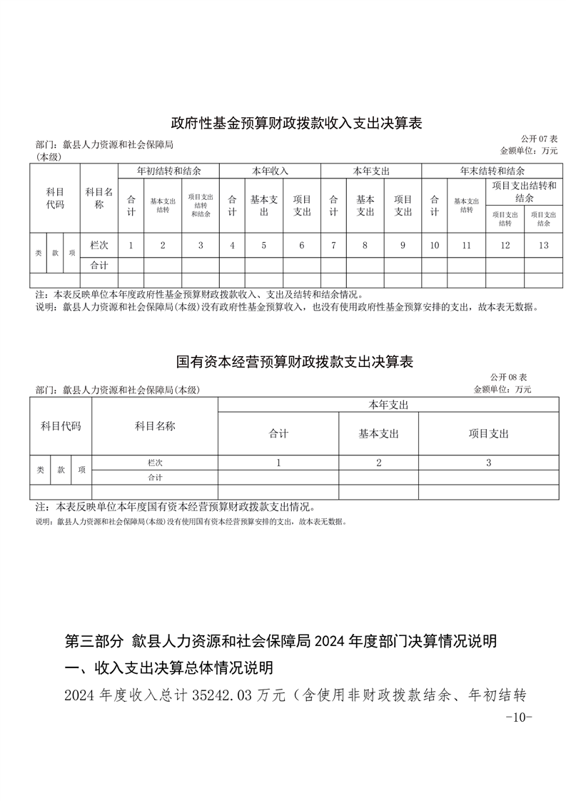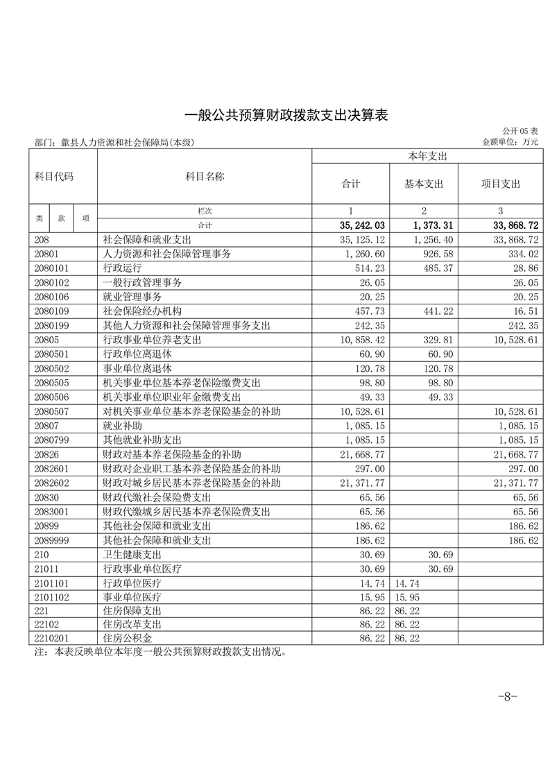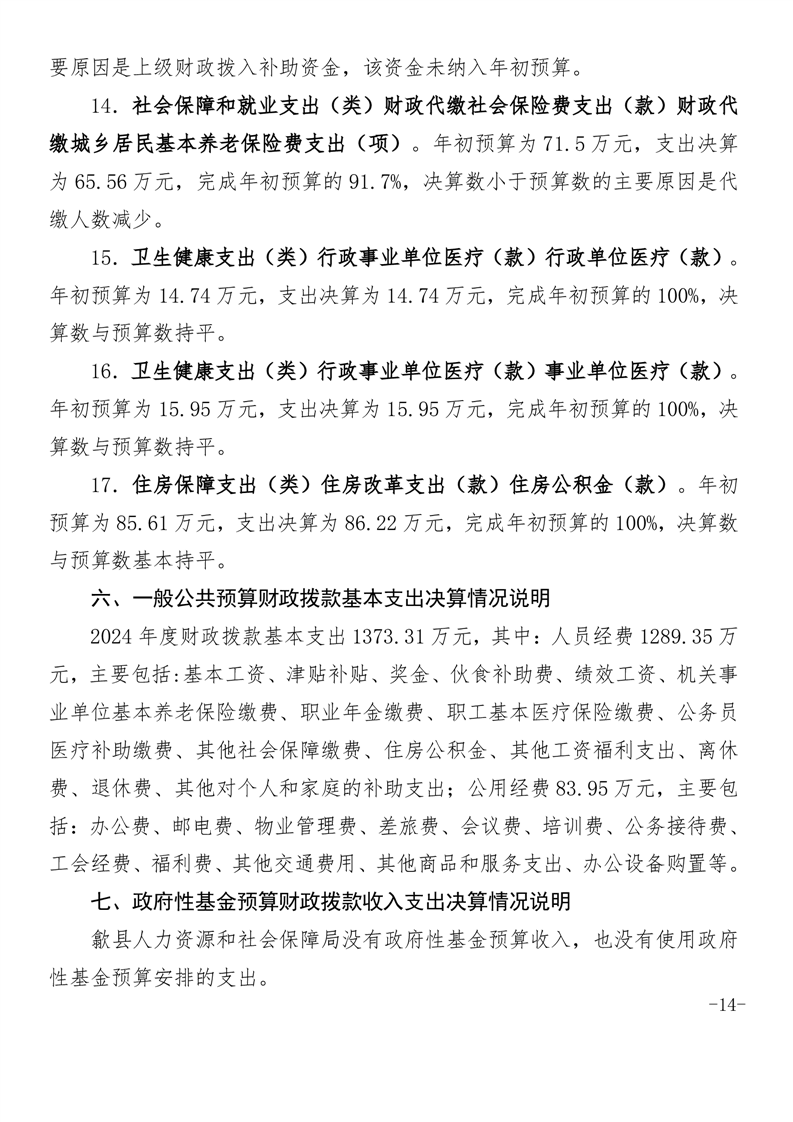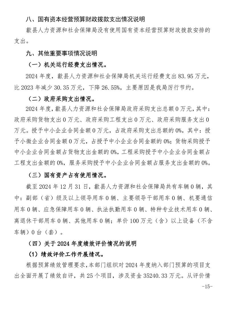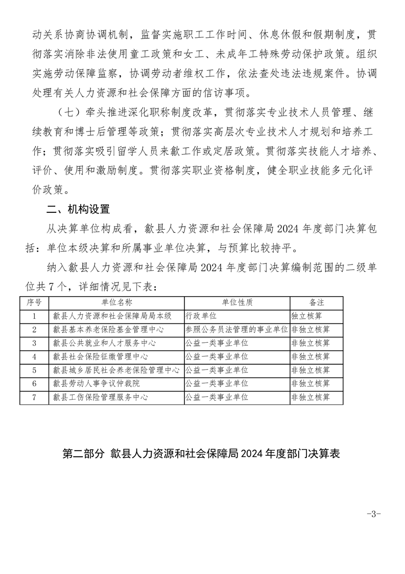 歙县人力资源和社会保障局2024年度部门决算