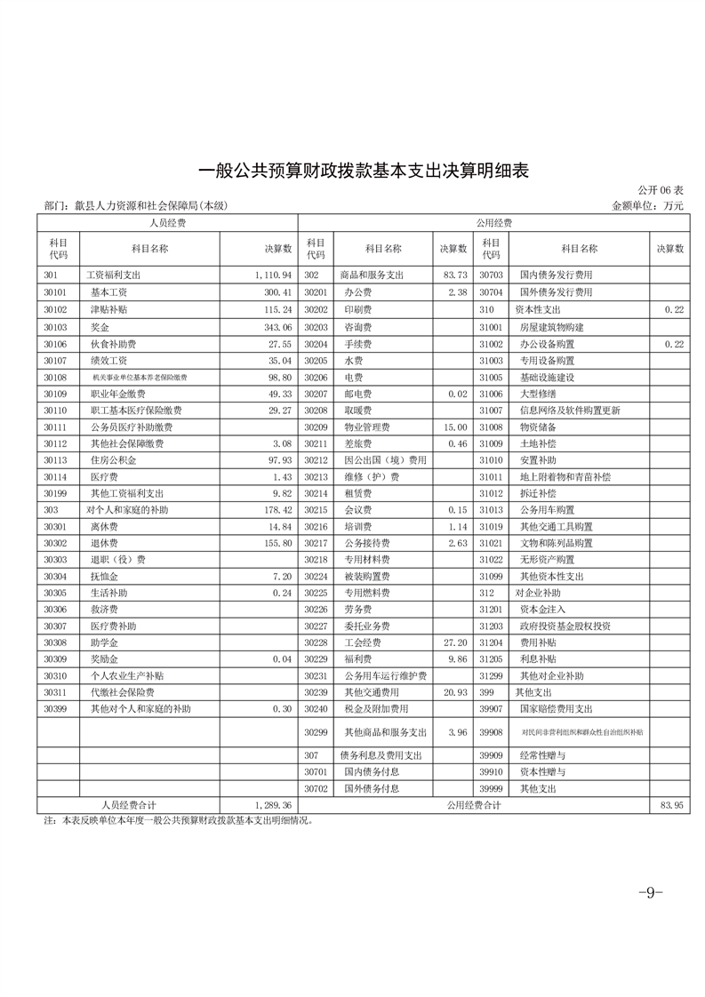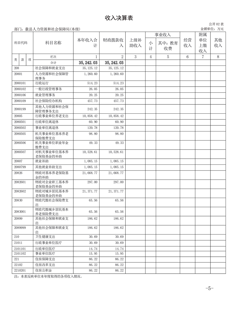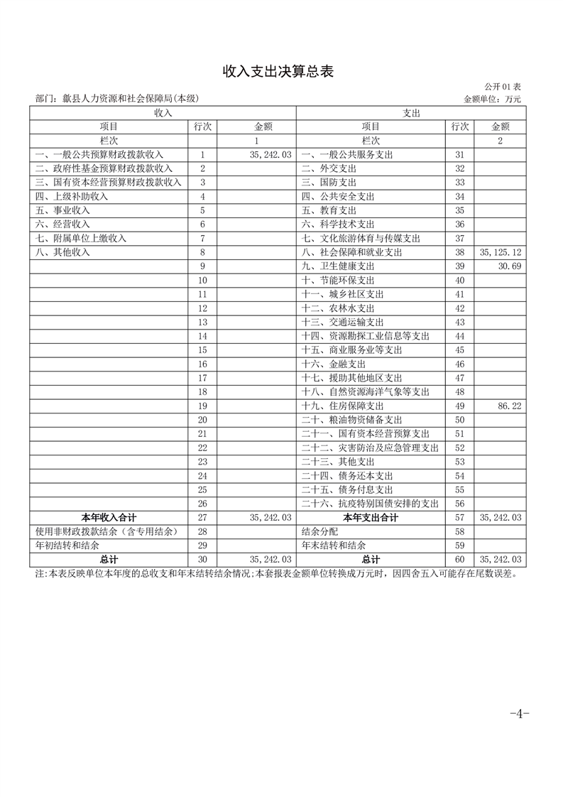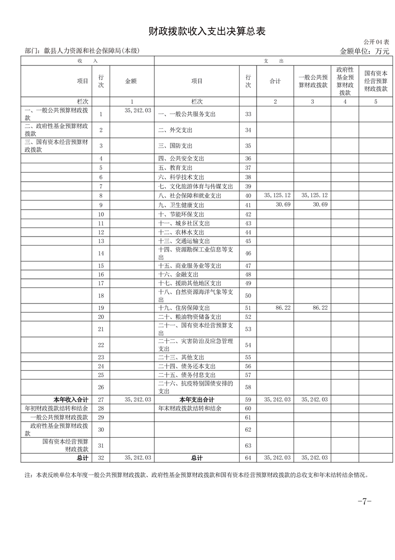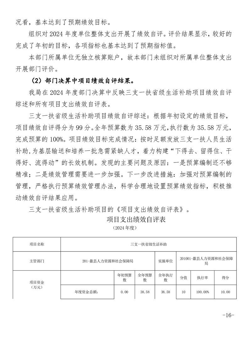 歙县人力资源和社会保障局2024年度部门决算