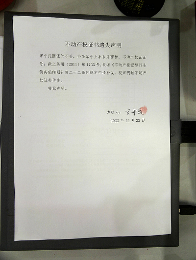 遗失声明(宋中良)