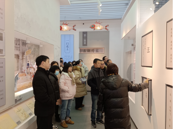 在讲解员的带领下,大家依次参观了序厅、古训传家厅、修身齐家厅、时代新家厅及“从取舍起”主题展区。一帧帧影像、一本本书籍、一张张图片,近距离传递了以孝悌为立家之本,以耕读为传家之基,以勤俭为兴家之源,以忍让为安家之根的歙县家风的传承发展。