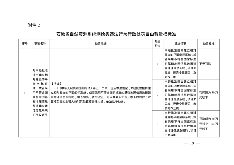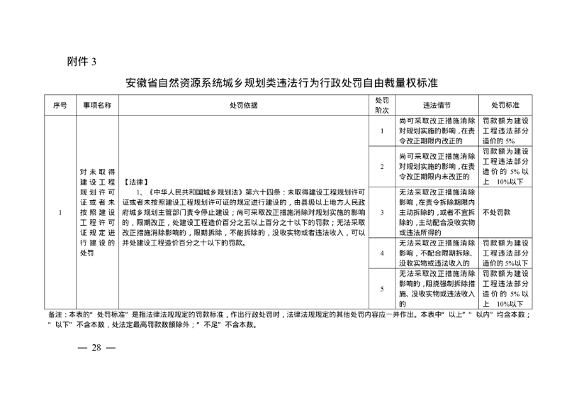 安徽省自然资源系统土地、测绘、城乡规划违法行为行政处罚自由裁量权标准