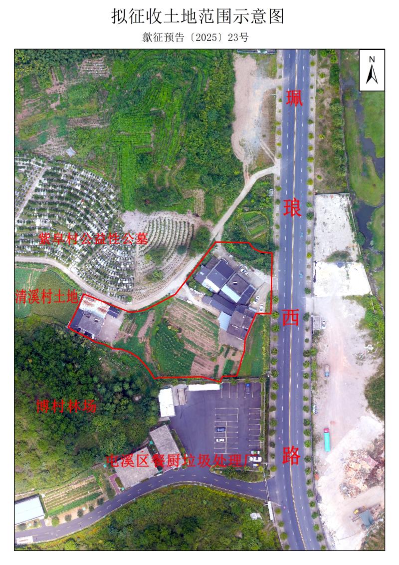本次拟征收土地位于绍濂乡清溪村十六组范围内地块四至范围详见征收土地范围示意图