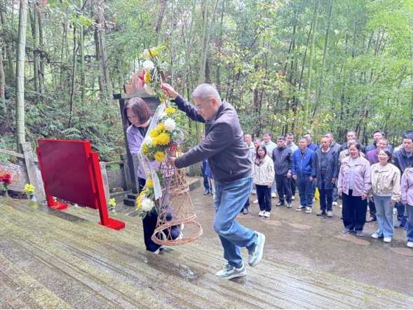 活动当日,队伍整齐划一步入庄严肃穆的小练革命烈士纪念基地。在巍然耸立的革命烈士纪念碑前,全体人员静默肃立,深切缅怀为民族独立和人民解放事业英勇献身的革命先烈。两名党员代表稳稳抬起花圈,缓步走向纪念碑,将承载着无限敬仰与哀思的花圈敬献于碑前。全体人员向长眠于此的革命英烈深深三鞠躬,表达对先烈们崇高品格和伟大牺牲精神的无限追思与崇高敬意。鲜红的党旗下,全体党员紧握右拳,重温入党誓词,铿锵有力的誓言在纪念地上空回荡,字字千钧,掷地有声。