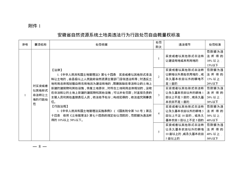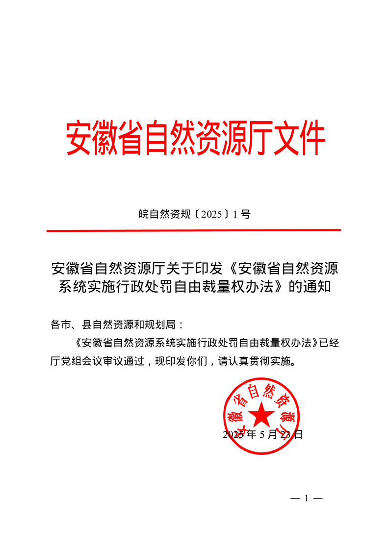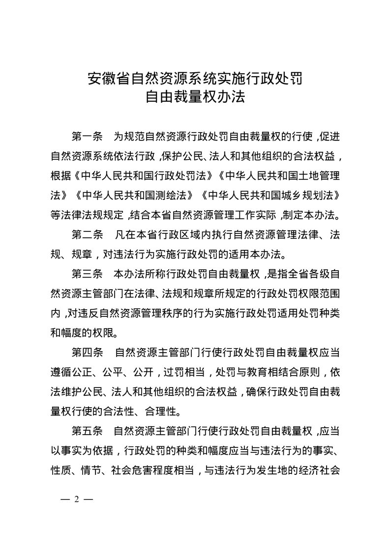 安徽省自然资源厅关于印发《安徽省自然资源系统实施行政处罚自由裁量权办法》的通知